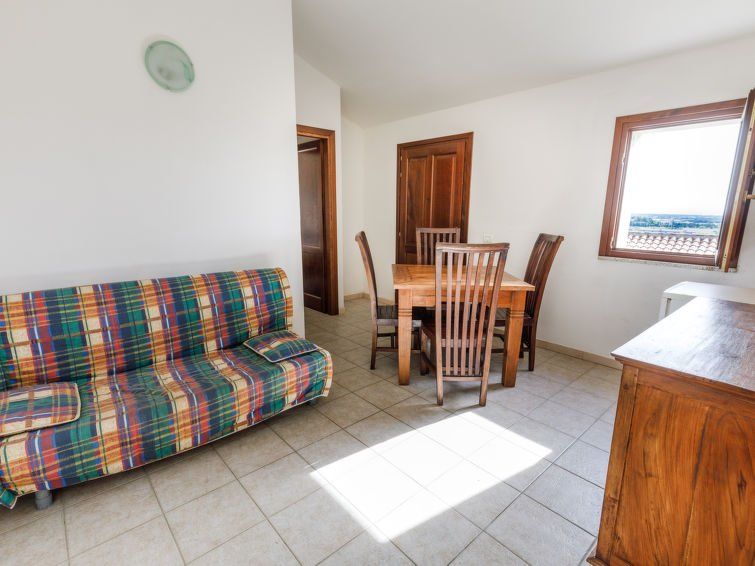 The quiet and yet well connected location with sea views and west orientation is fantastic. The daylight bathroom with shower cubicle should be emphasized positively. Unfortunately, there are no folding shutters or blinds on the outside, there are only interior shutters, which together with the poor insulation ensure high temperatures inside and at night you can either not lock them or not air them. No bottom hung windows. Bad kitchen equipment. Comfortable bed. Loveless exterior design.