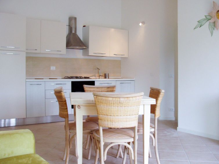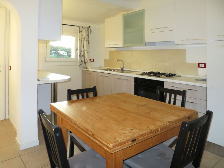 "Ea Bianca", 3-room apartment 65 to 70 m2. Modern and tasteful furnishings: living/sleeping room with 1 double sofabed, dining table and TV. 1 room with 1 double bed. 1 room with 2 sleeping facilities. Kitchenette (oven, 4 gas rings). Shower/WC. Electric heating, air-conditioning.