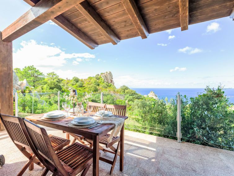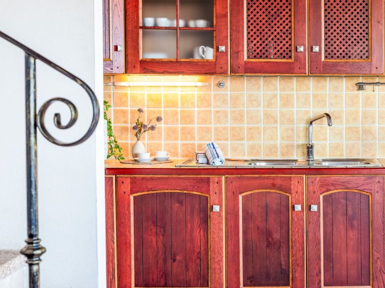 7-room villa 75 m2 on 2 levels. Bright, cosy furnishings: living/dining room with satellite TV (flat screen). Exit to the terrace. Open kitchen (4 hot plates, oven, dishwasher, toaster, microwave, electric coffee machine). Upper floor: 1 double bedroom. 2 rooms, each room with 2 beds.