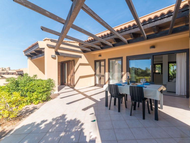 "Villa 10 B", 4-room house. Bright, simple and modern furnishings: living/sleeping room with 1 double sofabed, dining table and TV. Exit to the terrace. 1 room with 1 double bed and shower/WC. Exit to the terrace. 1 room with 1 double bed. 1 room with 1 pull-out bed (2 pers.). Open kitchen (dishwasher, 4 gas rings, toaster, kettle, microwave).