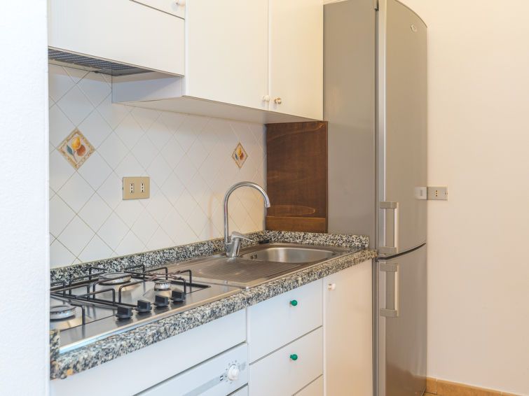 "Rei Sole Bilo (REI321)", 2-room terraced house 40 m2. Modern furnishings: living/sleeping room with 1 double sofabed, dining table and satellite TV. 1 room with 1 double bed. Open kitchen (oven, 4 gas rings). Shower/WC. Electric heating, air-conditioning. Terrace roofed. Terrace furniture, deck chairs (2).