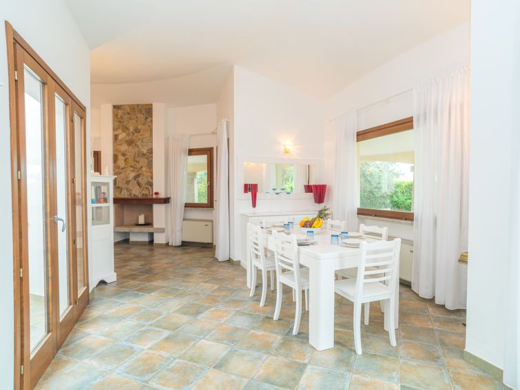 "Rei Sole (REI308)", 4-room house 100 m2. Spacious, very beautiful and tasteful furnishings: living/sleeping room with 1 double sofabed and open-hearth fireplace (only for decoration), dining table and satellite TV. Exit to the terrace. 1 room with 1 double bed and shower/WC. 1 room with 1 double bed.