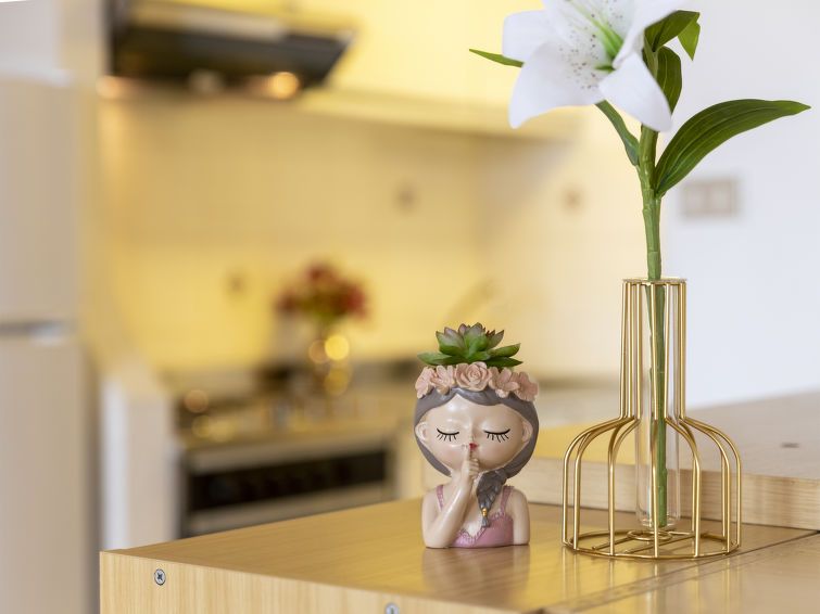 The apartment complex is beautifully planted and the location with a sea view is wonderful. After initial problems with the electricity, we were happy about the hot water and the working shower. However, the apartment is old and poorly maintained. The air conditioning and the oven didn't work. The double bed was catastrophic, much too narrow for 2 people, hard mattress on a steel frame. Next time we would prefer an apartment with a real bed.