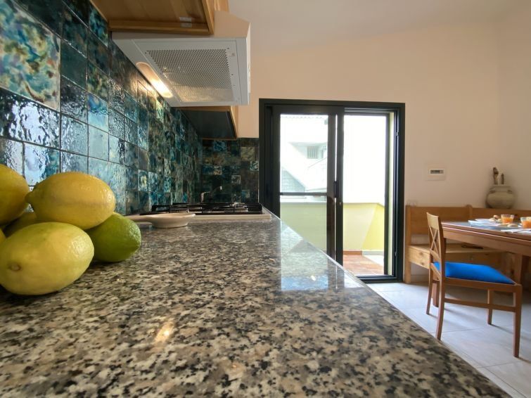 "Blue House", 2-room apartment 35 m2 on 1st floor. Simple and cosy furnishings: living/dining room with sliding door, window onto the courtyard with 1 double sofabed (140 cm, length 190 cm), dining table and TV. 1 double bedroom, window onto the courtyard. Exit to the terrace. Kitchenette (oven, 4 gas rings, freezer).