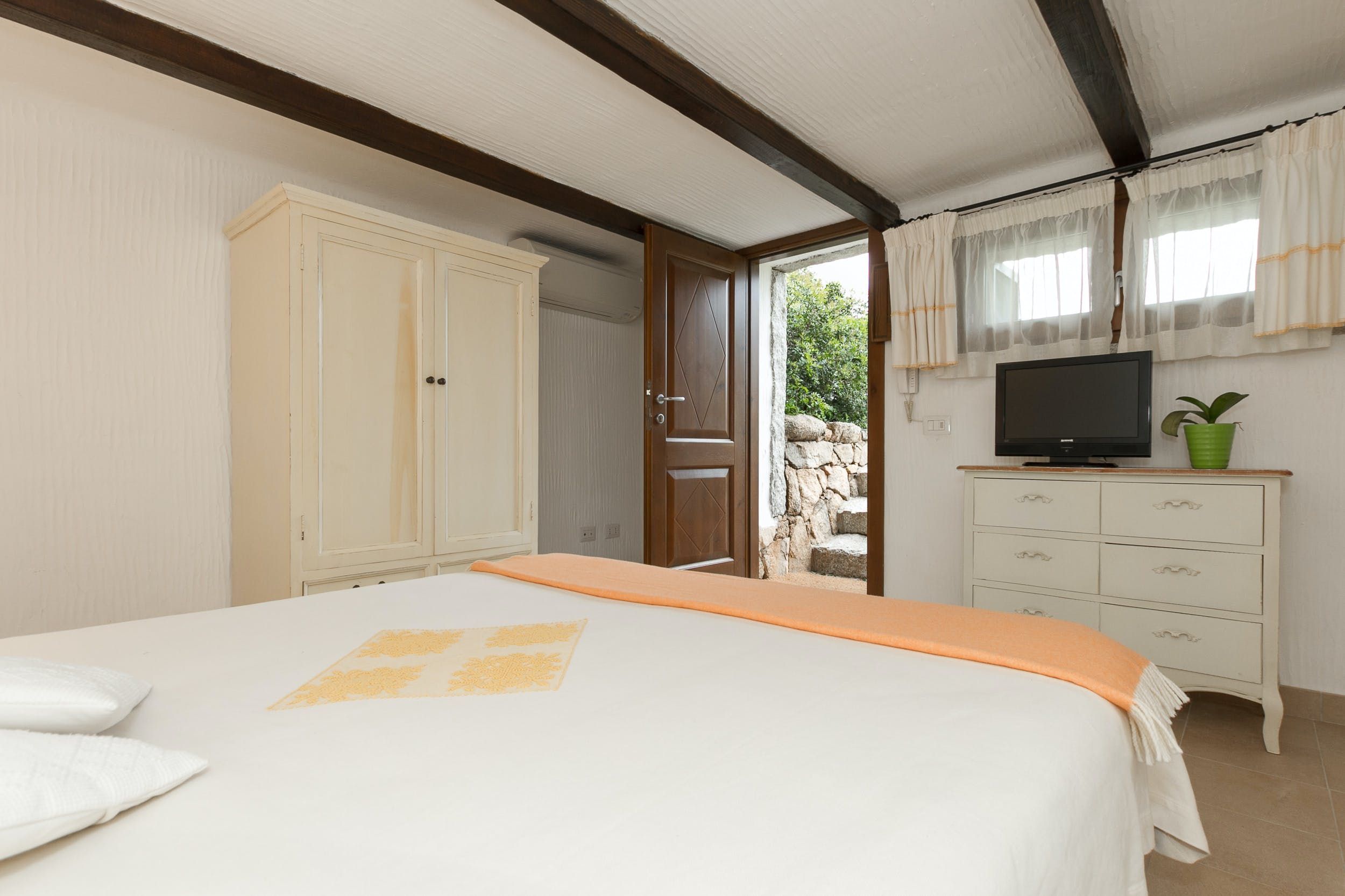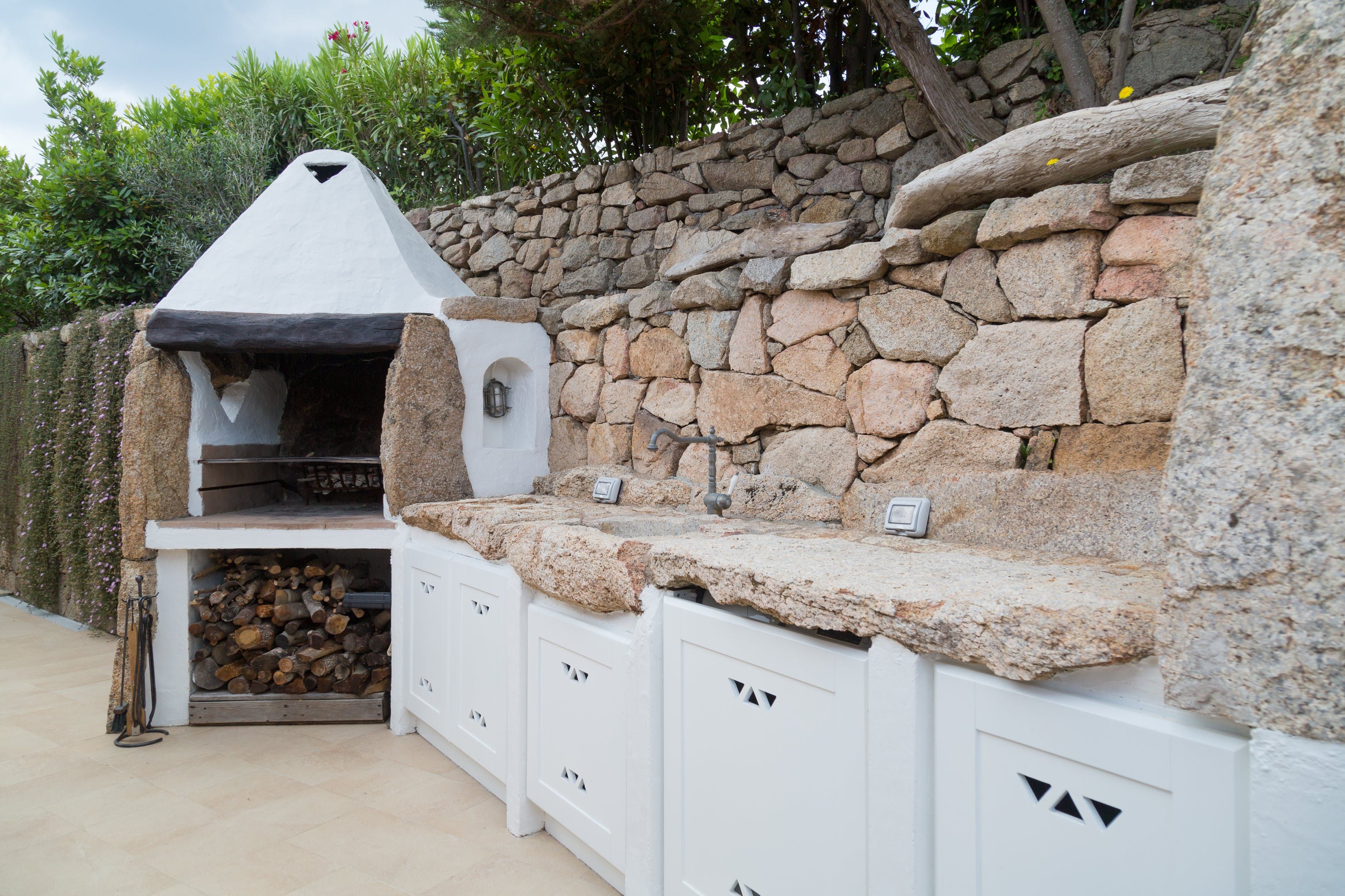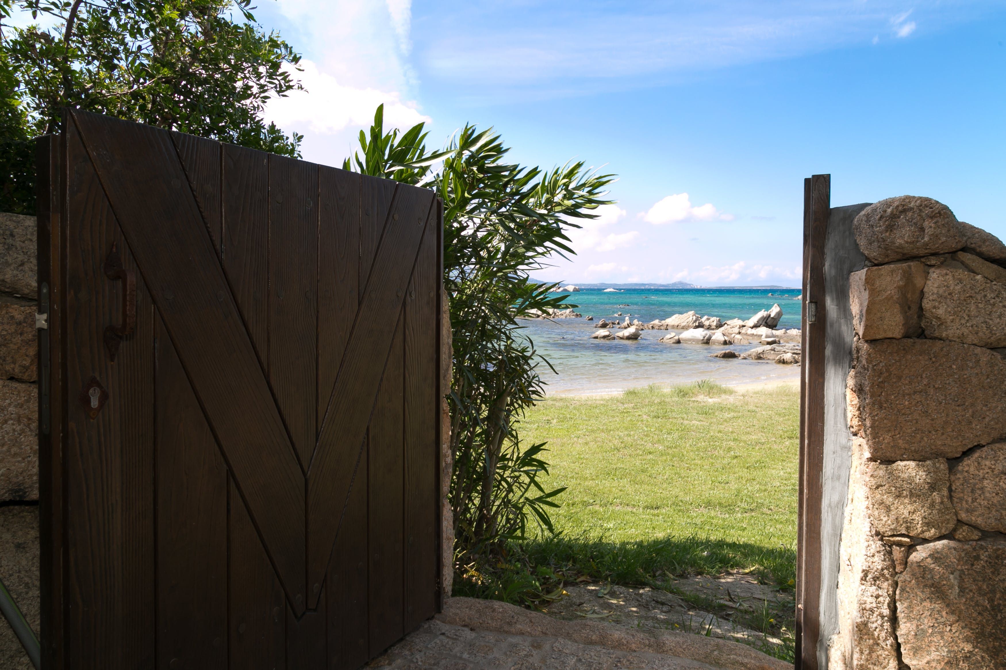 The fenced garden leads directly to a small sandy beach in a calm bay. The water is shallow and clear, so it’s like having your own private swimming pool. There are two stand-up paddleboards for you to use, which is a great way of exploring the coast a little further. There are plenty of beaches to explore aside from your own – why not drive seven minutes to Spiaggia dei Baracconi?