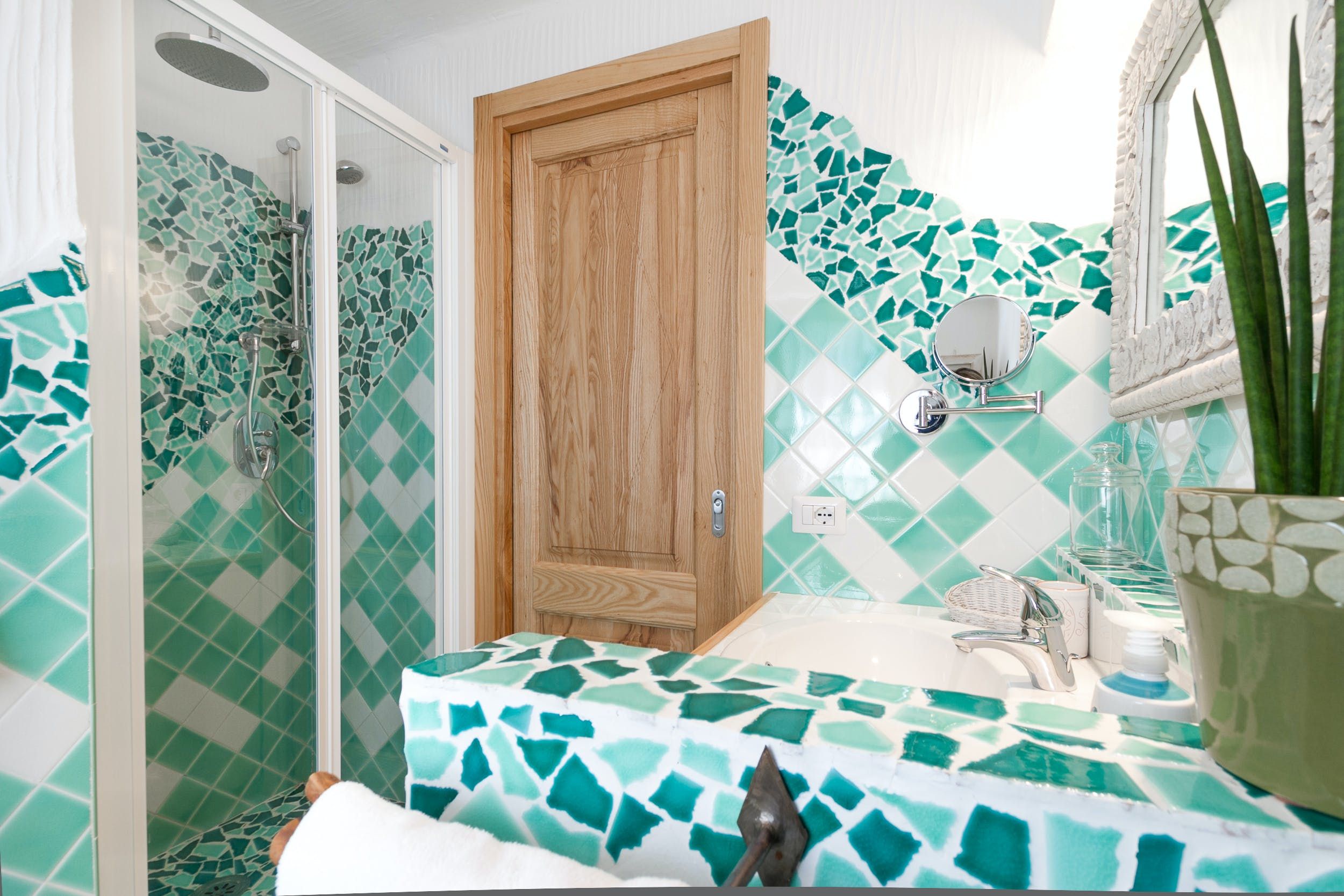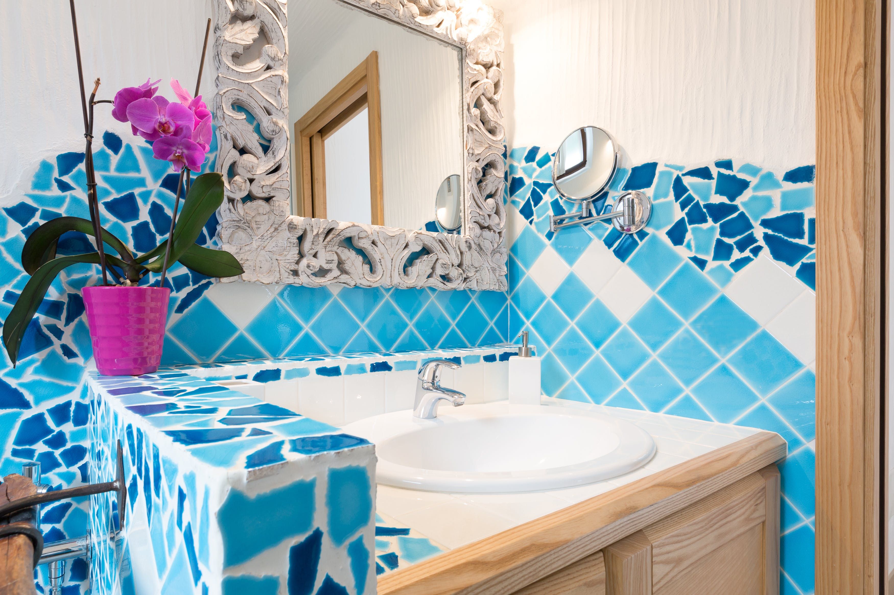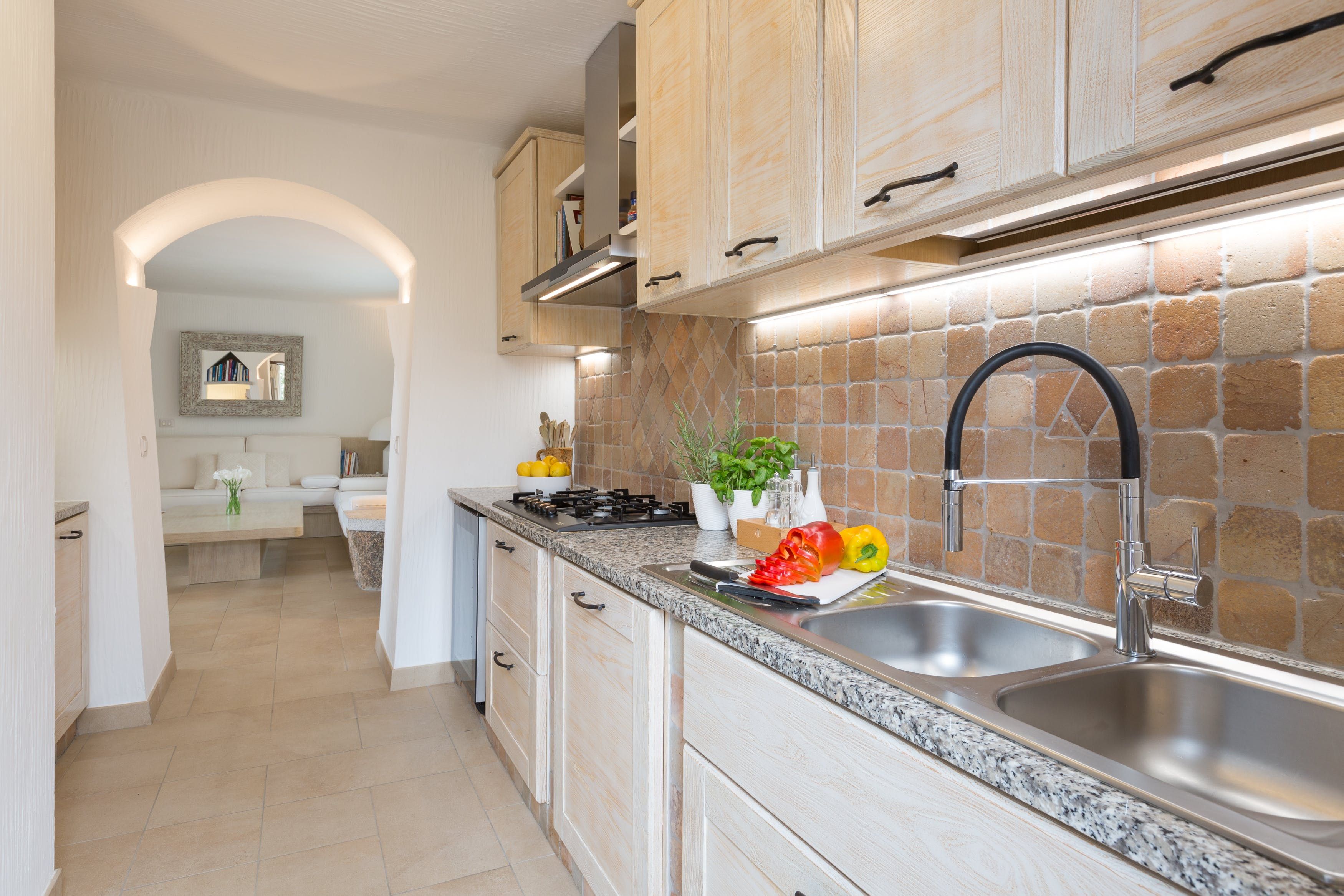 The fenced garden leads directly to a small sandy beach in a calm bay. The water is shallow and clear, so it’s like having your own private swimming pool. There are two stand-up paddleboards for you to use, which is a great way of exploring the coast a little further. There are plenty of beaches to explore aside from your own – why not drive seven minutes to Spiaggia dei Baracconi?