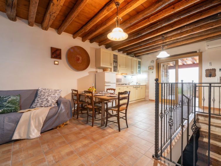 "Cadoni", 2-room house on 2 levels, on the ground floor. Antique and cosy furnishings: large living/dining room with 1 double sofabed, dining table, TV, air conditioning, fan and forced-air heating. Exit to the garden. Kitchen (4 gas rings, toaster, kettle). Shower/bidet/WC. Upper floor: 1 large room with 2 beds, 1 double bed, air conditioning, fan and forced-air heating.