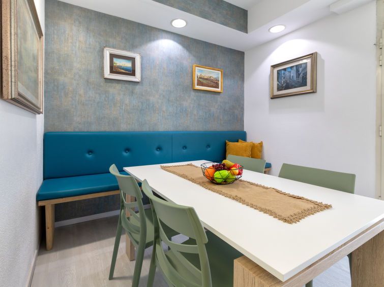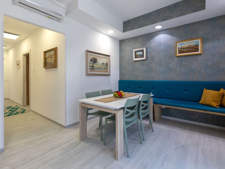 "Domus Flavia", 3-room apartment 97 m2, on the upper ground floor. Spacious, fully renovated in 2025, tasteful and cosy furnishings: living/dining room with dining table and TV (flat screen). 1 room with 1 double bed, shower/WC and TV (flat screen). Exit to the veranda. 1 room, window onto the courtyard with 1 double bed and TV (flat screen).