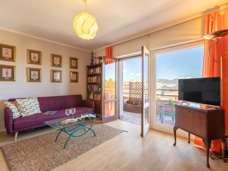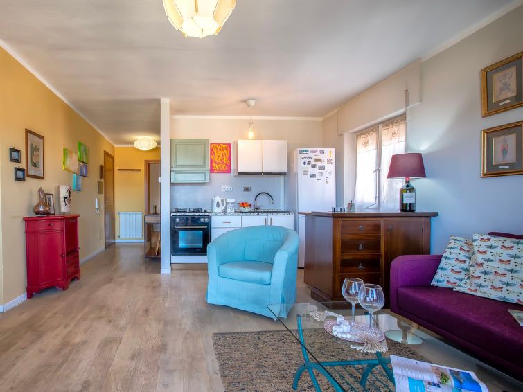 "Gabbiano", 2-room apartment 50 m2 on 1st floor. Beautiful and cosy furnishings: living/dining room with 1 sofabed, TV and flat screen. Exit to the terrace. 1 double bedroom. Kitchenette (4 gas rings, toaster, kettle). Shower/bidet/WC. Small terrace. Terrace furniture. Panoramic view of the sea, the countryside and the city.