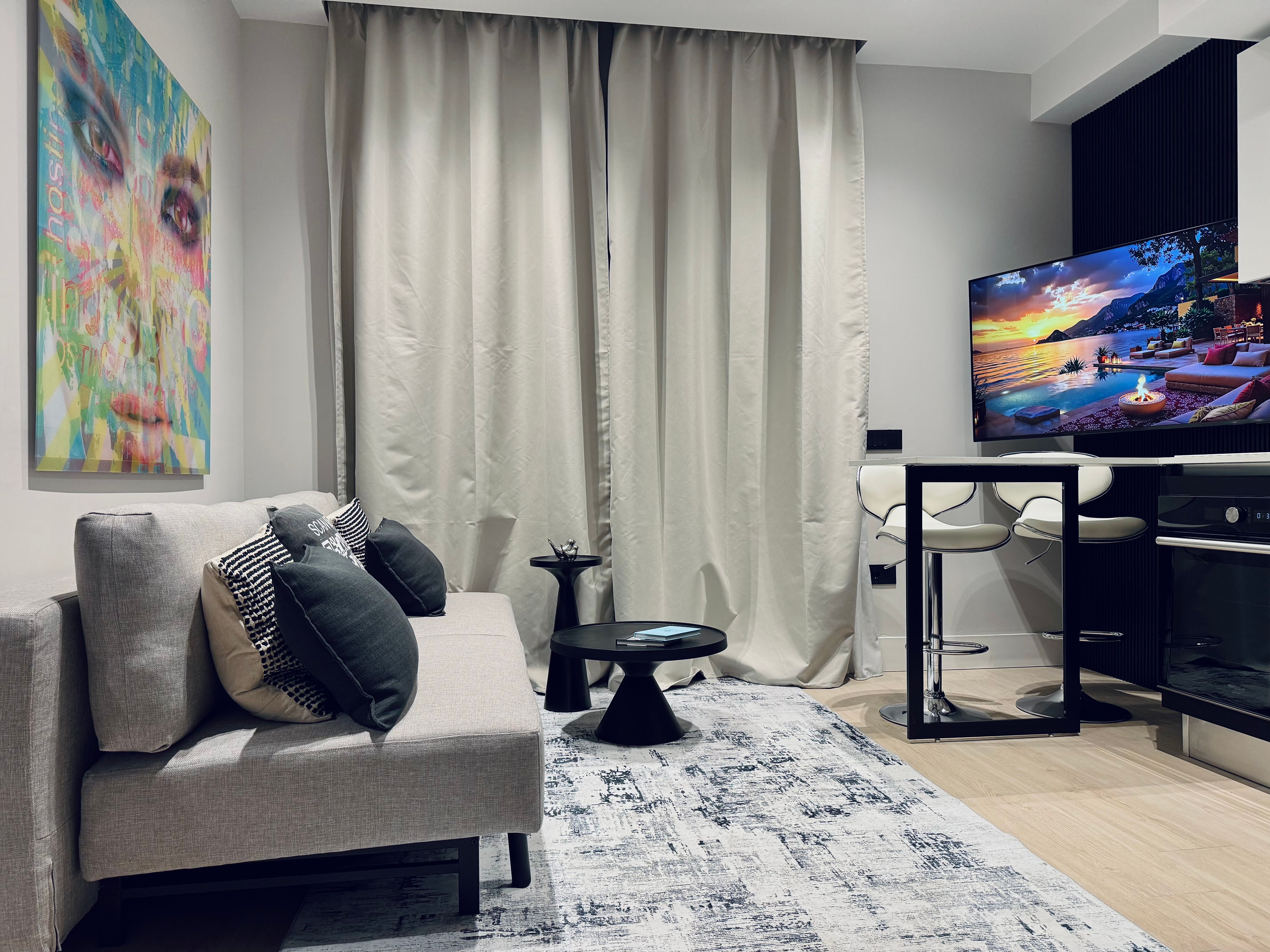 Drinks by the marina, lounging on the beach, or maybe a boat trip to discover secluded bays – whatever’s on your Olbia itinerary, this apartment is a great place to base yourself. If four of you are staying, it might feel a little cosy when the sofa bed is set up. And the compact kitchen is probably best suited to simple meals or snacks – but with so many excellent eateries on your doorstep, that won’t be a problem. Your host will even provide beach towels and a parasol, making beach days a breeze. For a comfortable stay in a contemporary building, a short stroll from the centre of town, this small yet stylish spot is a winner.