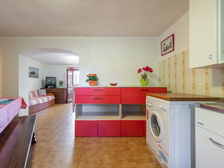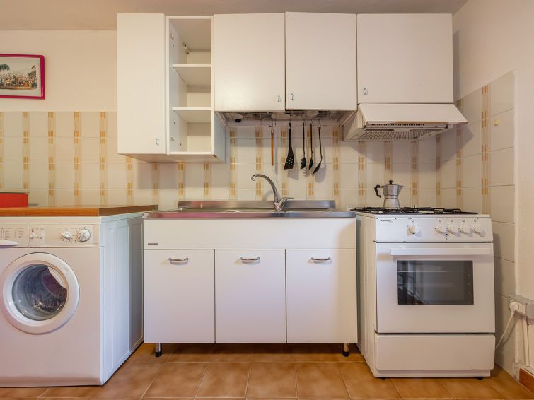 4-room house 130 m2 on 2 levels. Simple and cosy furnishings: living room with dining table and TV. 2 double bedrooms. Shower/bidet/WC. Boiler. On the lower ground floor: (steep stair) living room with 1 double sofabed, dining table and TV. 1 double bedroom. Kitchenette (4 hot plates, oven, freezer) with dining table.