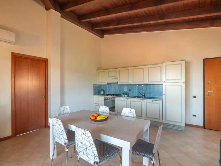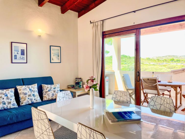 "I Mirti di Porto Pozzo (PPZ122)", 3-room apartment 80 m2 on 1st floor. Comfortable furnishings: large living/sleeping room with 1 double sofabed, dining table and satellite TV. Exit to the terrace. 1 room with 1 double bed and shower/bidet/WC. 1 room with 2 beds. Open kitchen (oven, dishwasher, 4 gas rings, toaster, electric coffee machine, Capsules for coffee machine (Caffitaly) extra).