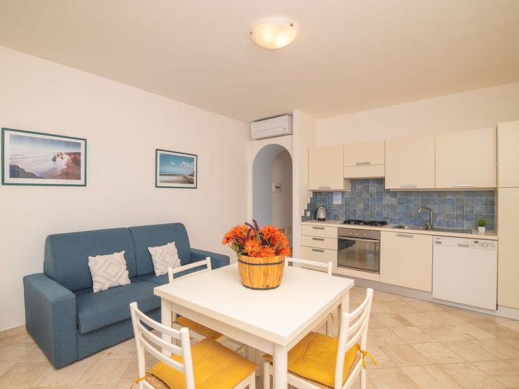 "Il Fjordo bilo (PPZ164)", 2-room apartment 45 m2, on the upper ground floor. Bright, modern furnishings: living/sleeping room with 1 double sofabed and dining table. Exit to the terrace. 1 room with 1 french bed (160 cm). Open kitchen (oven, dishwasher, 4 gas rings, toaster, electric coffee machine).