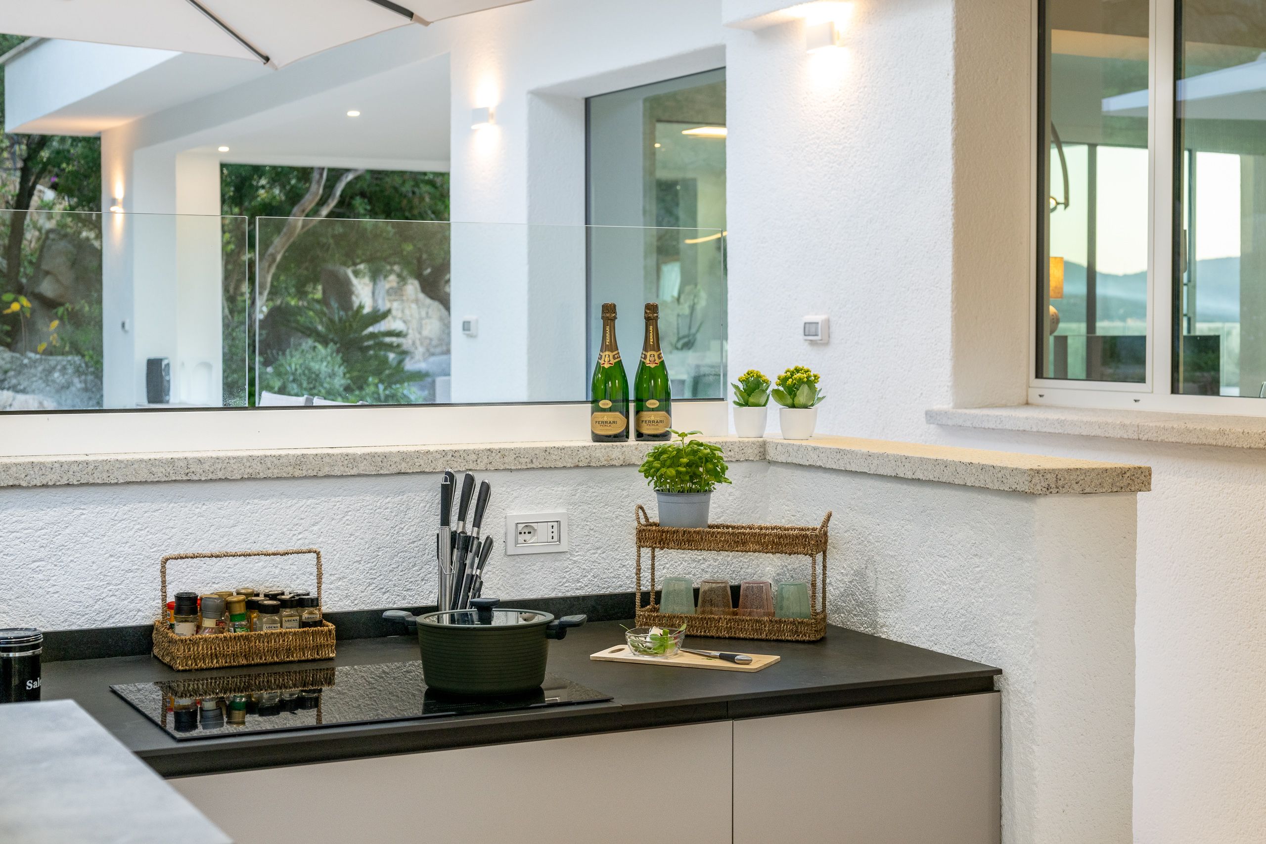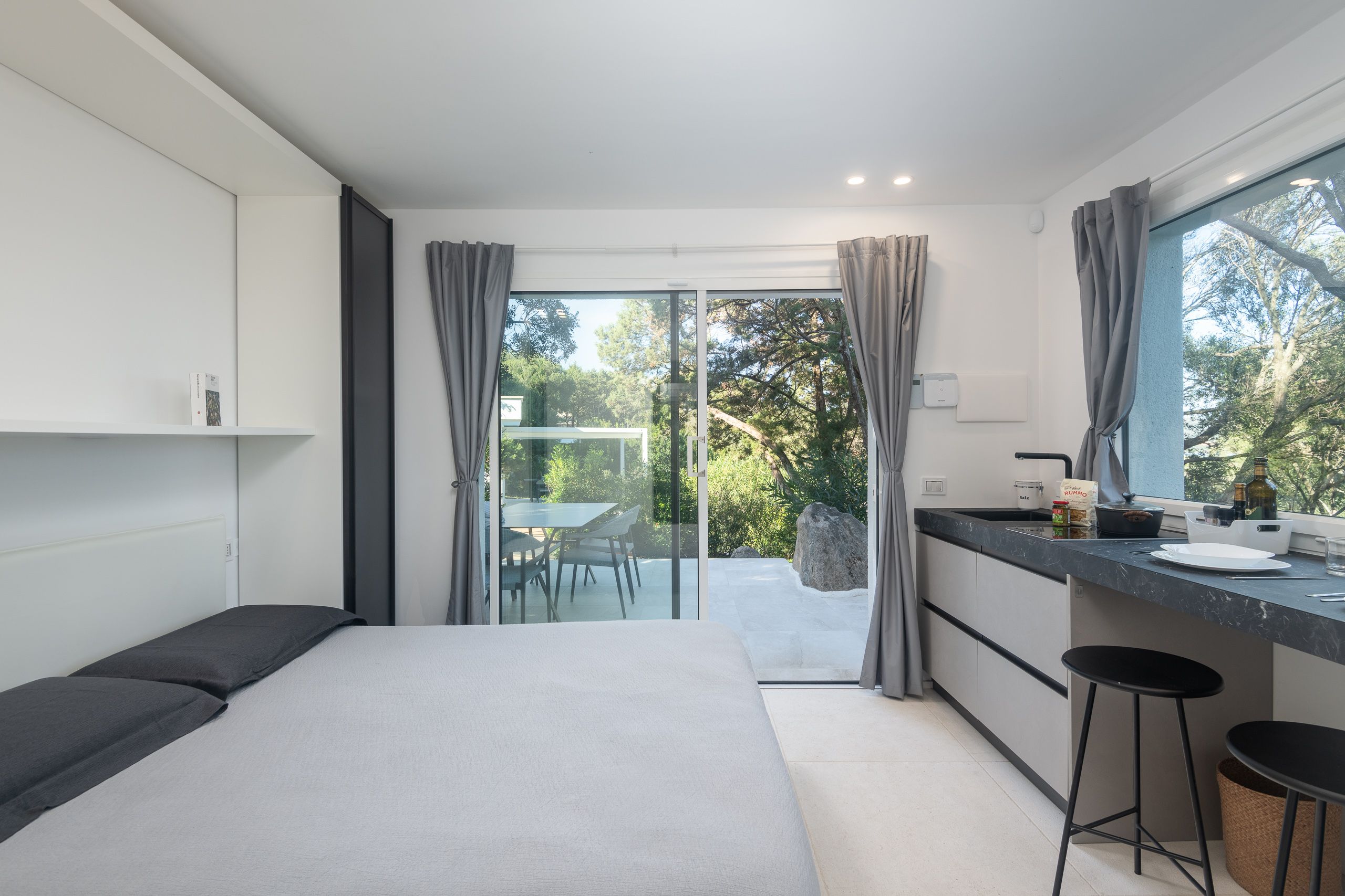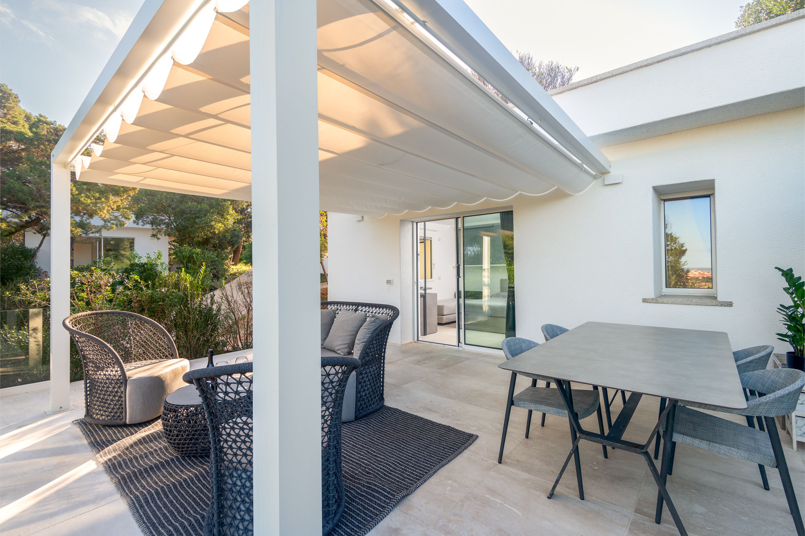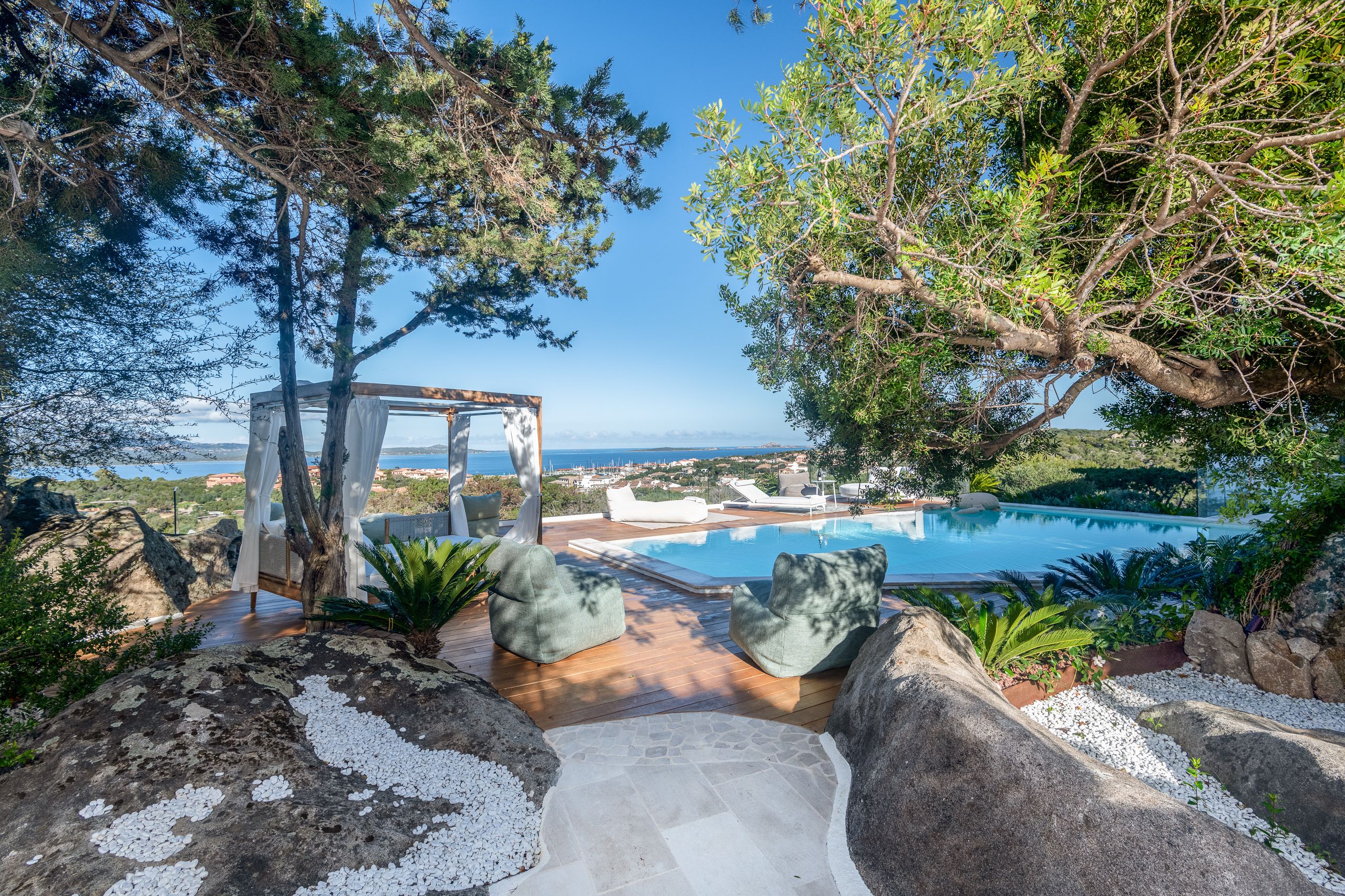 Perched above Porto Rotondo in a private five-thousand square metres of ancient trees and granite monoliths, this is an exceptional Sardinian retreat for large groups. A modern design built around a historic villa, it features a main house and five scattered villas, a stunning blend of architecture and nature. Enjoy the outdoor fitness area, soak in panoramic views from the infinity pool, and dine together in one of the covered verandas. There's more than enough to do here, but if you feel like exploring, the lively town square is only five hundred metres away.