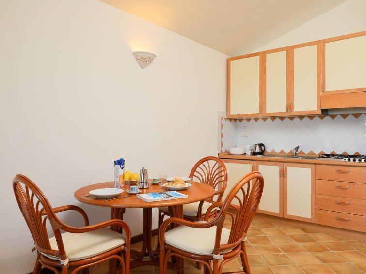 "Dalia 14 - Vista Village", 1-room terraced house 35 m2, on the ground floor. Comfortable and cosy furnishings: living/dining room with 1 double bed, TV, satellite TV and flat screen. Exit to the terrace. Kitchenette (4 hot plates) with dining table. Shower/bidet/WC. Air-conditioning, forced-air heating.