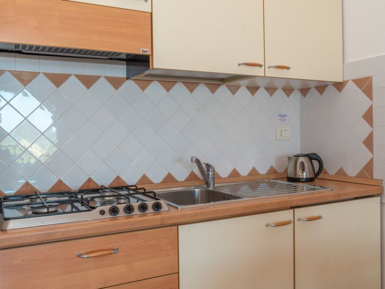 "Dalia 19 - Vista Village", 2-room terraced house 55 m2 on 1st floor. Comfortable and cosy furnishings: living/dining room with 1 double sofabed, satellite TV and flat screen. Exit to the terrace. 1 double bedroom with veranda. Kitchenette (4 hot plates). 2 showers/bidet/WC. Air-conditioning, forced-air heating.