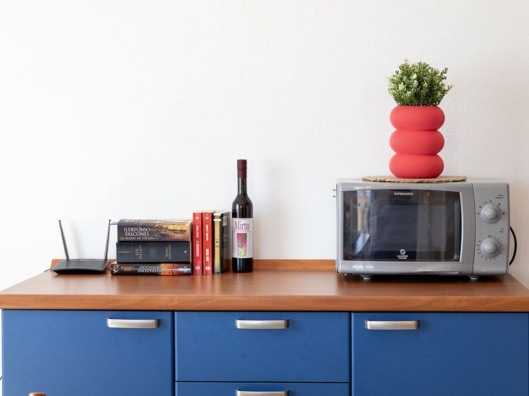 "La Casa di Mimmo", 2-room apartment on 2nd floor. Simple and practical furnishings: entrance hall with 1 sofabed, TV and flat screen. Exit to the terrace. 1 double bedroom. Exit to the balcony. Kitchenette (oven, 4 gas rings, toaster, kettle, microwave). Exit to the terrace. Shower/bidet/WC.