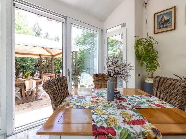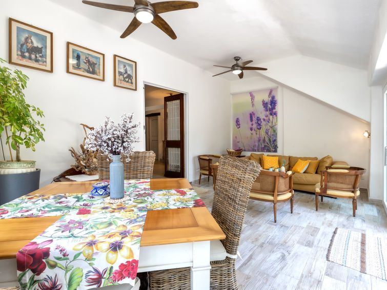 4-room villa 100 m2, on the ground floor. Tasteful and stylish furnishings: living/dining room with TV (flat screen). Exit to the veranda. 2 double bedrooms. 1 room with 1 french bed (length 140 cm), shower/bidet/WC. Kitchen-/living room (4 hot plates, oven, dishwasher, toaster, kettle).