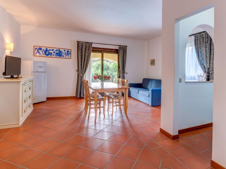 "Country Village Sea VIllas", 2-room apartment 55 to 60 m2. Cosy furnishings: living/sleeping room with 1 double sofabed, dining table and TV. Exit to the balcony, to the terrace. 1 room with 1 double bed. Kitchenette (4 gas rings, toaster, kettle). Bath/WC. Balcony or terrace. Terrace furniture, balcony furniture.