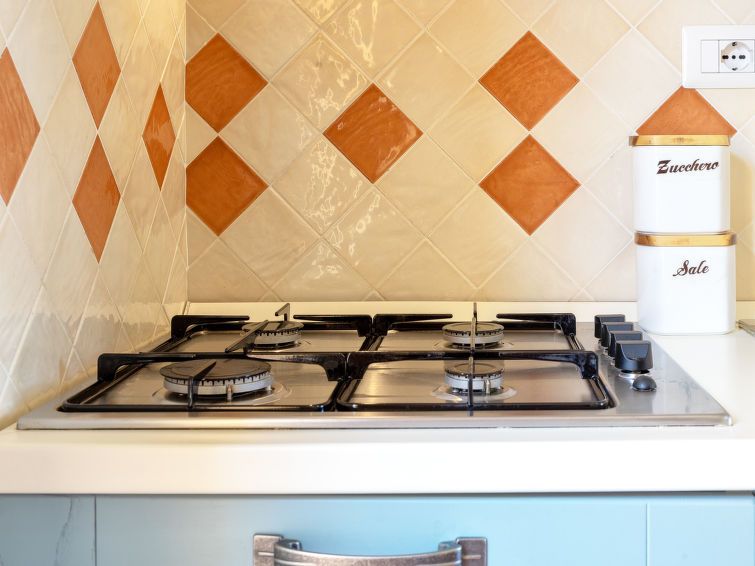 "Del Colle", 2-room apartment on 1st floor. Bright, tasteful and cosy furnishings: living/dining room with 1 sofabed, TV and flat screen. Exit to the terrace. 1 double bedroom, window onto the courtyard. Kitchenette (4 gas rings, toaster, kettle, microwave). Shower/bidet/WC. Air-conditioning.