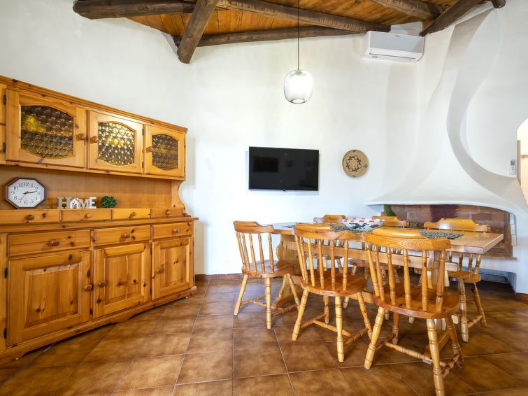 "Doria", 3-room terraced house 70 m2, on the ground floor. Simple and comfortable furnishings: living/dining room with open-hearth fireplace (only for decoration), TV (flat screen). Exit to the garden, to the terrace. 1 double bedroom. 1 room with 2 x 2 bunk beds. Kitchenette (4 hot plates, oven, toaster, kettle).