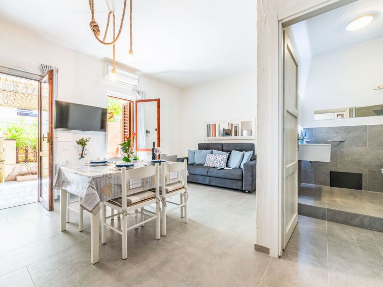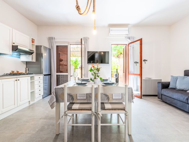 "Casa Darc", 3-room terraced house 65 m2. Comfortable and cosy furnishings: living/dining room with dining table. Exit to the garden. Kitchenette (oven, dishwasher, 4 gas rings, kettle, microwave, electric coffee machine). Exit to the garden. Bathroom. Upper floor: 1 double bedroom.