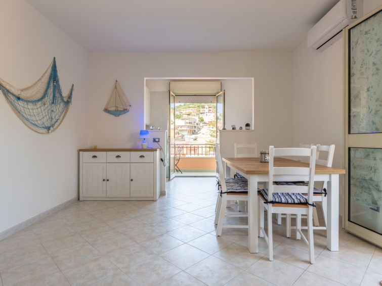 "Mare Fuori", 3-room apartment 85 m2 on 1st floor. Comfortable and cosy furnishings: living/dining room with dining table, digital TV and air conditioning. Exit to the balcony. 1 double bedroom with 1 x 2 bunk beds, TV and air conditioning. Exit to the balcony. 1 double bedroom with 1 bed, TV and air conditioning.