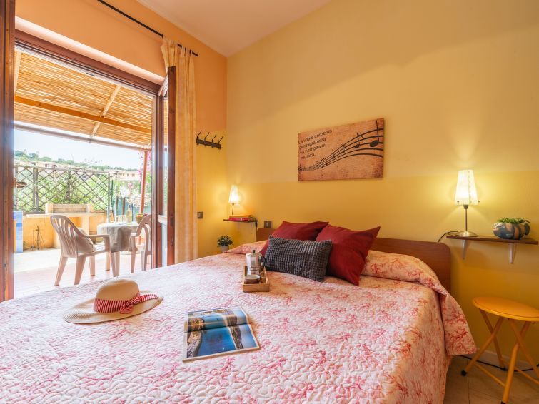 "Pentagramma", 2-room terraced house 44 m2. Comfortable and cosy furnishings: living/dining room with dining table and digital TV. Exit to the veranda. 1 double bedroom. Exit to the garden. Kitchenette (oven, 4 gas rings). Boiler (30 litres). Patio 5 m2, roofed. Terrace furniture.