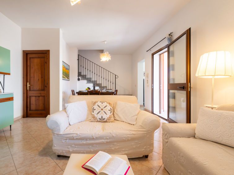 "Rosy", 5-room house 110 m2 on 2 levels, on the ground floor. Comfortable and cosy furnishings: large living/dining room with dining table and digital TV. Exit to the veranda. Kitchen (oven, dishwasher, 4 gas rings, kettle). Shower/bidet/WC. Upper floor: 1 double bedroom. Exit to the balcony.