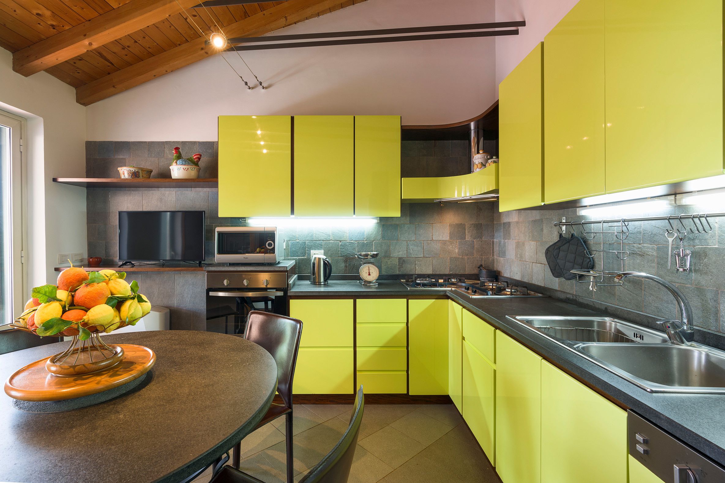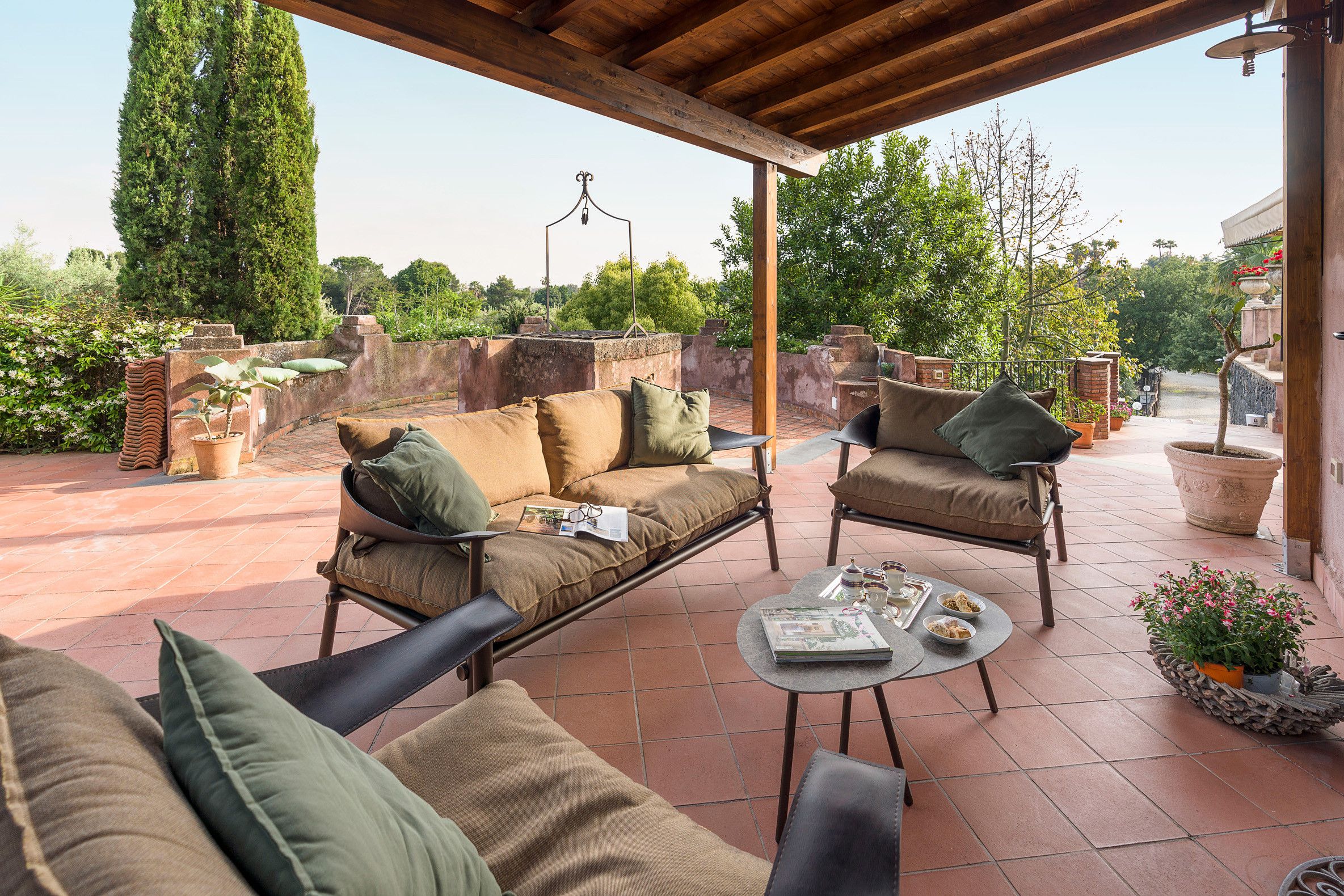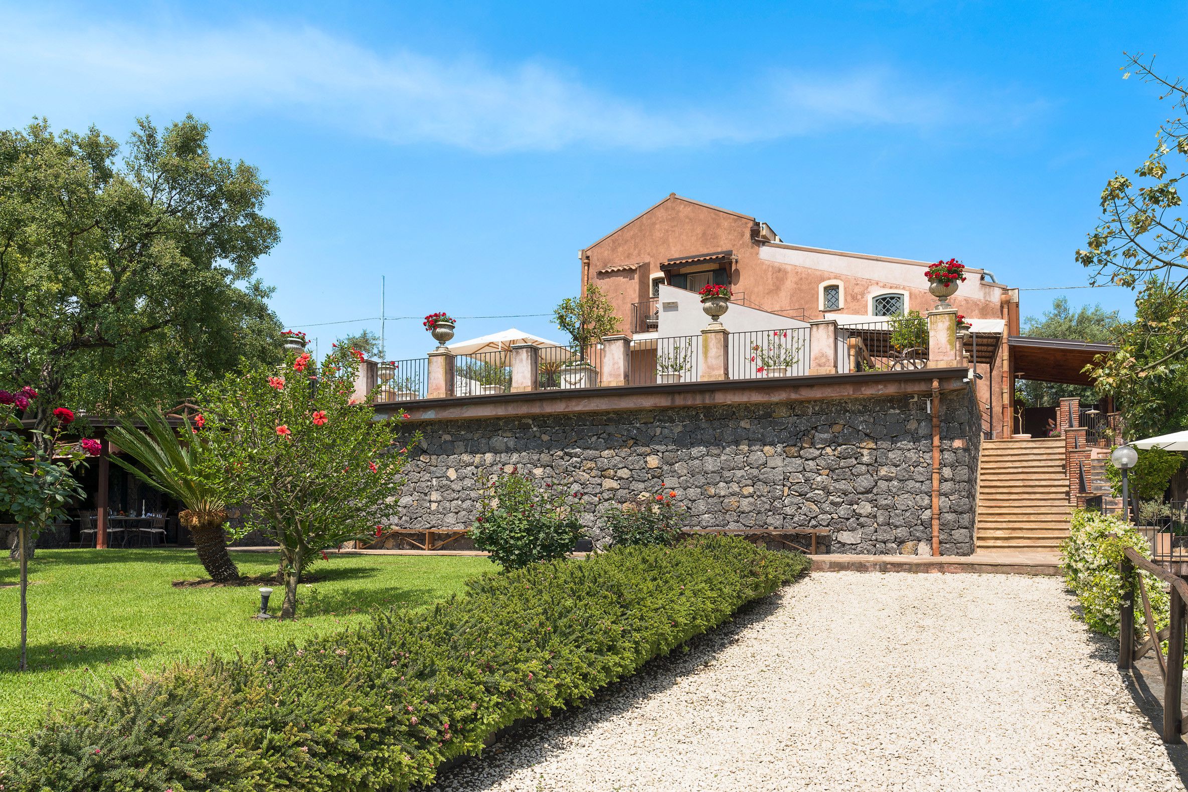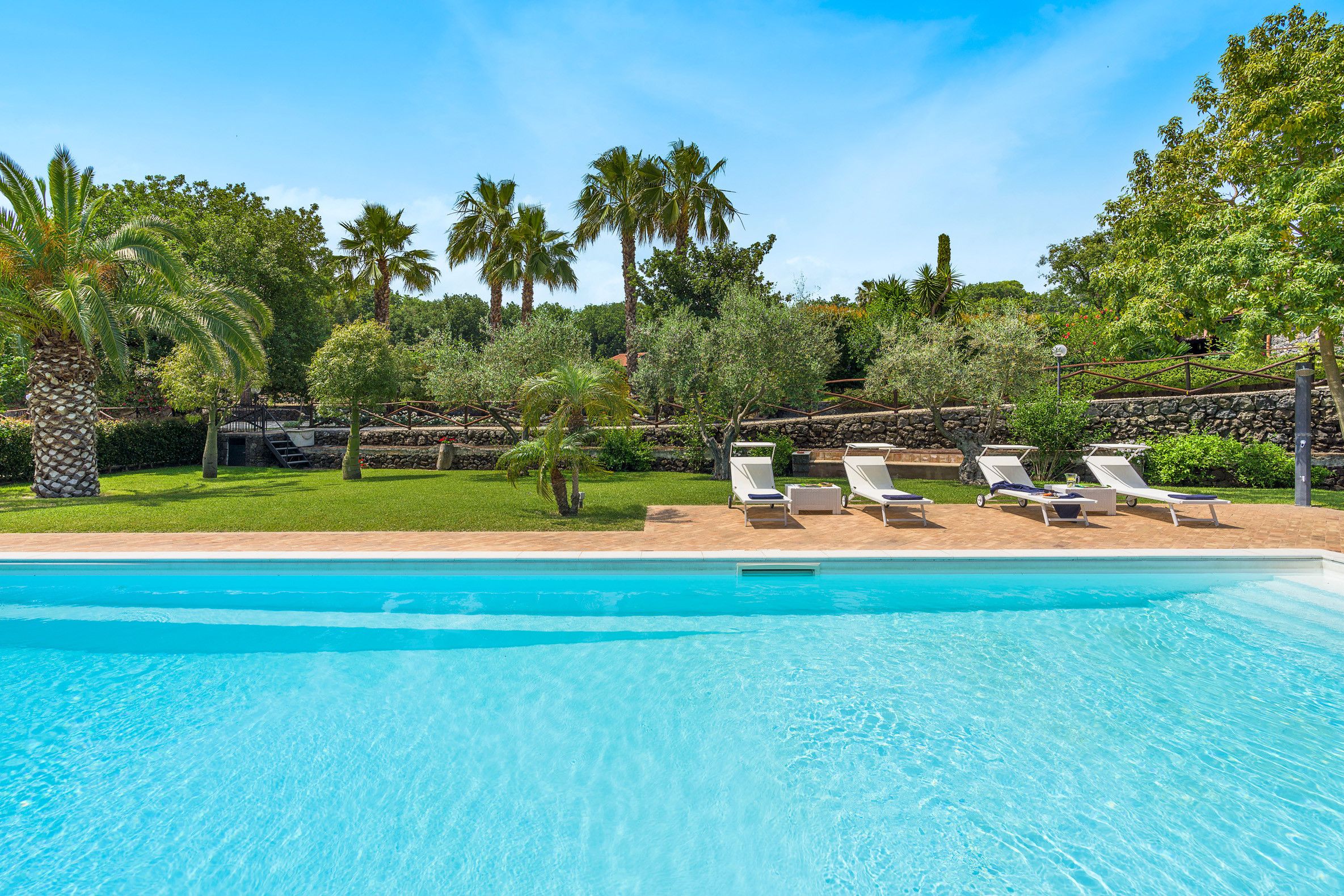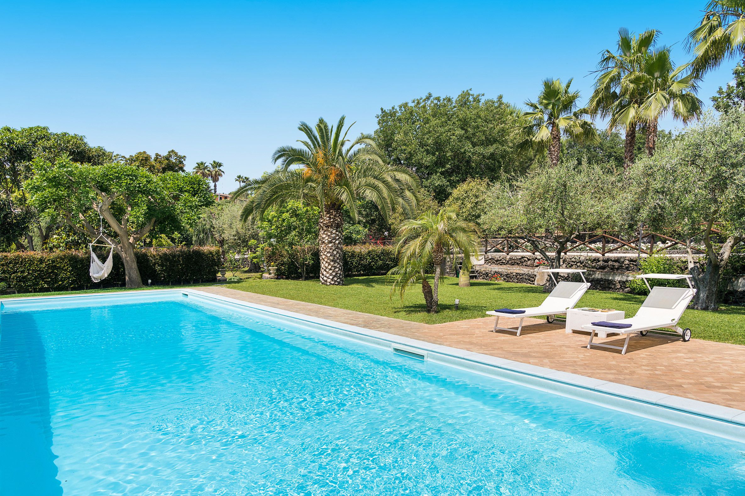 Not far from Catania, this cosy villa makes a fantastic base in eastern Sicily. The interiors aren't the most contemporary, but the dated elements have a certain charm – even if the sloped ceilings upstairs mean taller guests will have to mind their heads. Besides, the crown jewel here is the sprawling garden. Between the seasonal swimming pool, outdoor kitchen, and bevvy of terraces, you won't be short on spots to enjoy the Sicilian sunshine. Fancy an adventure further afield? There's a rocky beach in Acireale (7 kilometres away), plus plenty of attractions within driving distance.