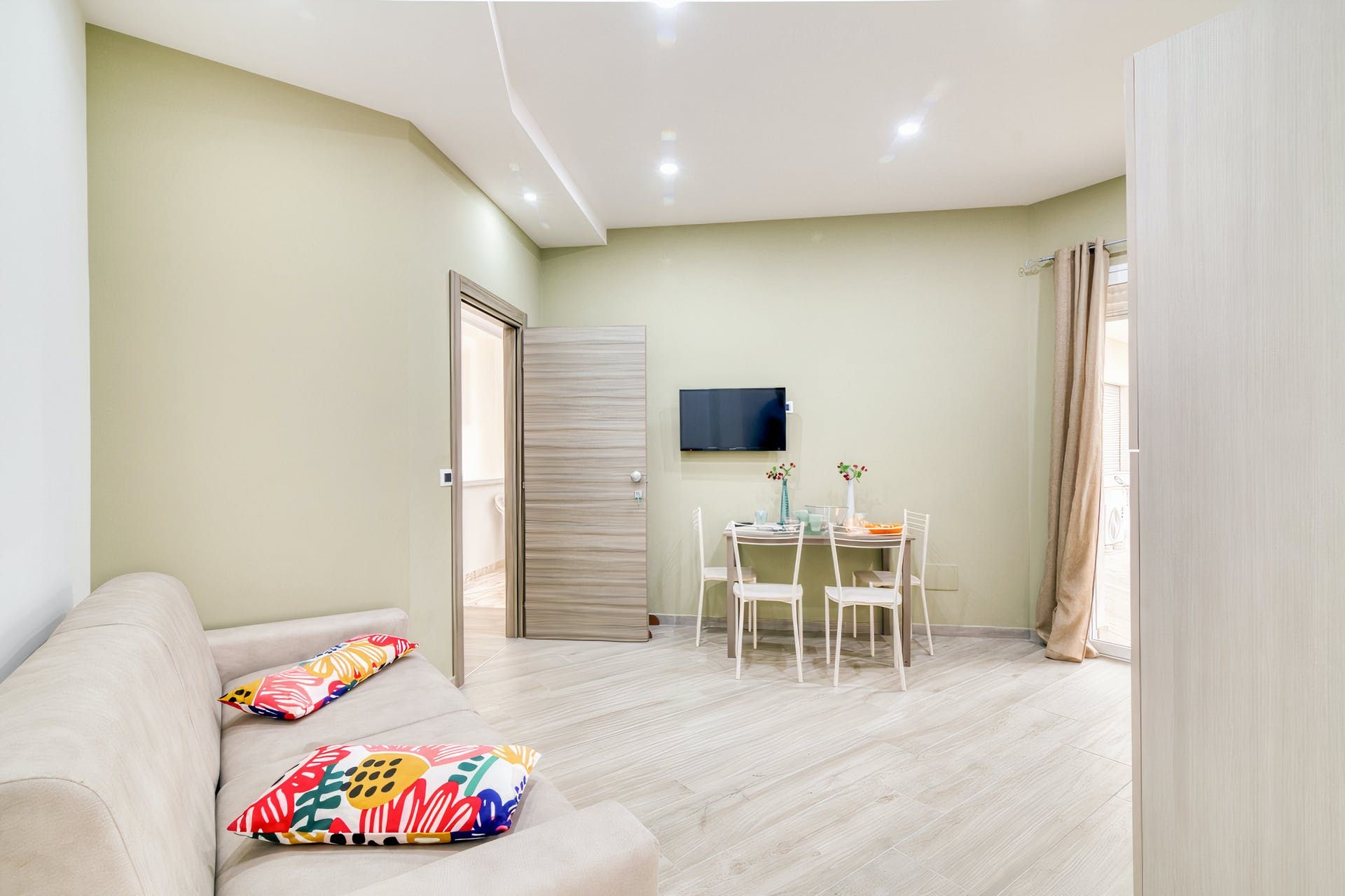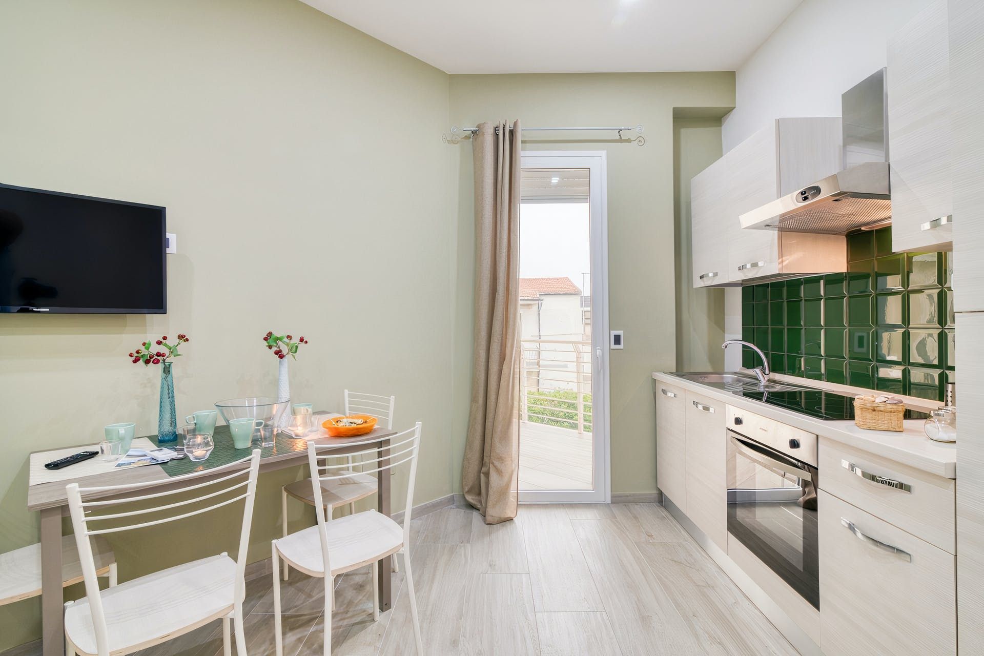 Back at home, while the minimalist décor of this apartment isn't going to win any awards, you'll love the fresh, uplifting feel and clean, uncluttered spaces. Grab a glass of something crisp and head out on the balconies leading off both the living room and bedroom. And if you fancy a change of scene, there's always the communal garden and built-in barbecue area downstairs – a great place to meet your neighbours and pick up some tips on what's hot in Sicily.
