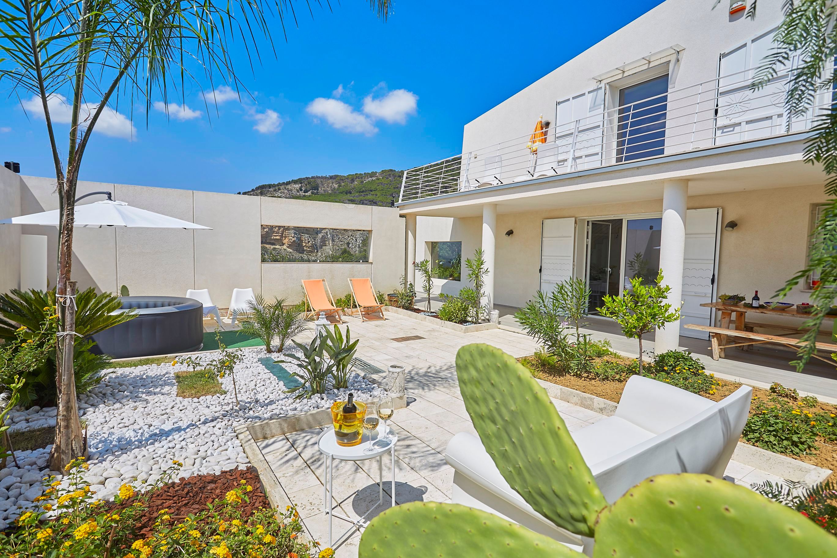 Surrounded by vineyards and olive groves, this classic Sicilian home is only a short drive from the beaches of Alcamo and nearby historical villages. You’ll also find UNESCO World Heritage sites and seasonal activities like olive and grape harvesting close by. Spend quiet days relaxing at home – cooling off in the pool, firing up the barbecue for long lunches, and unwinding in the hot tub. This home has even been designed for family holidays, with cots and a children's room filled with toys, for an easy and effortless stay.