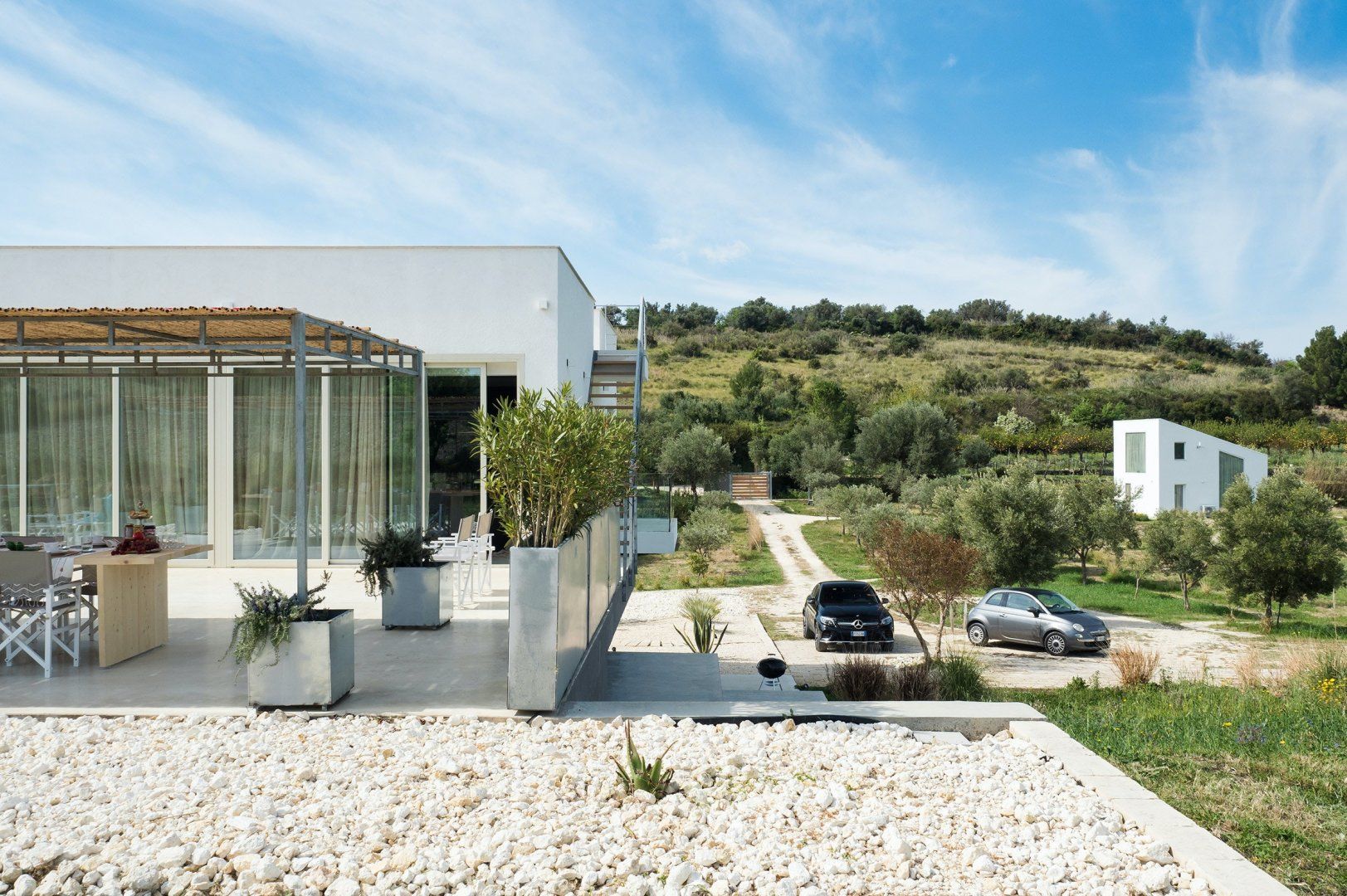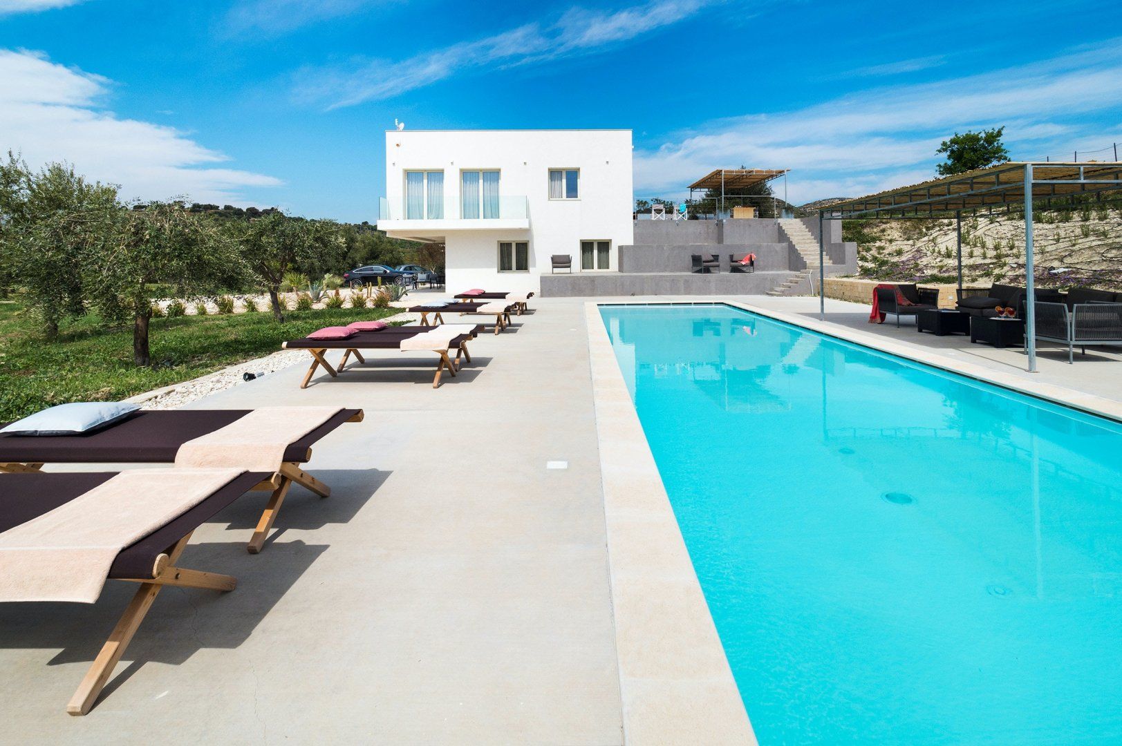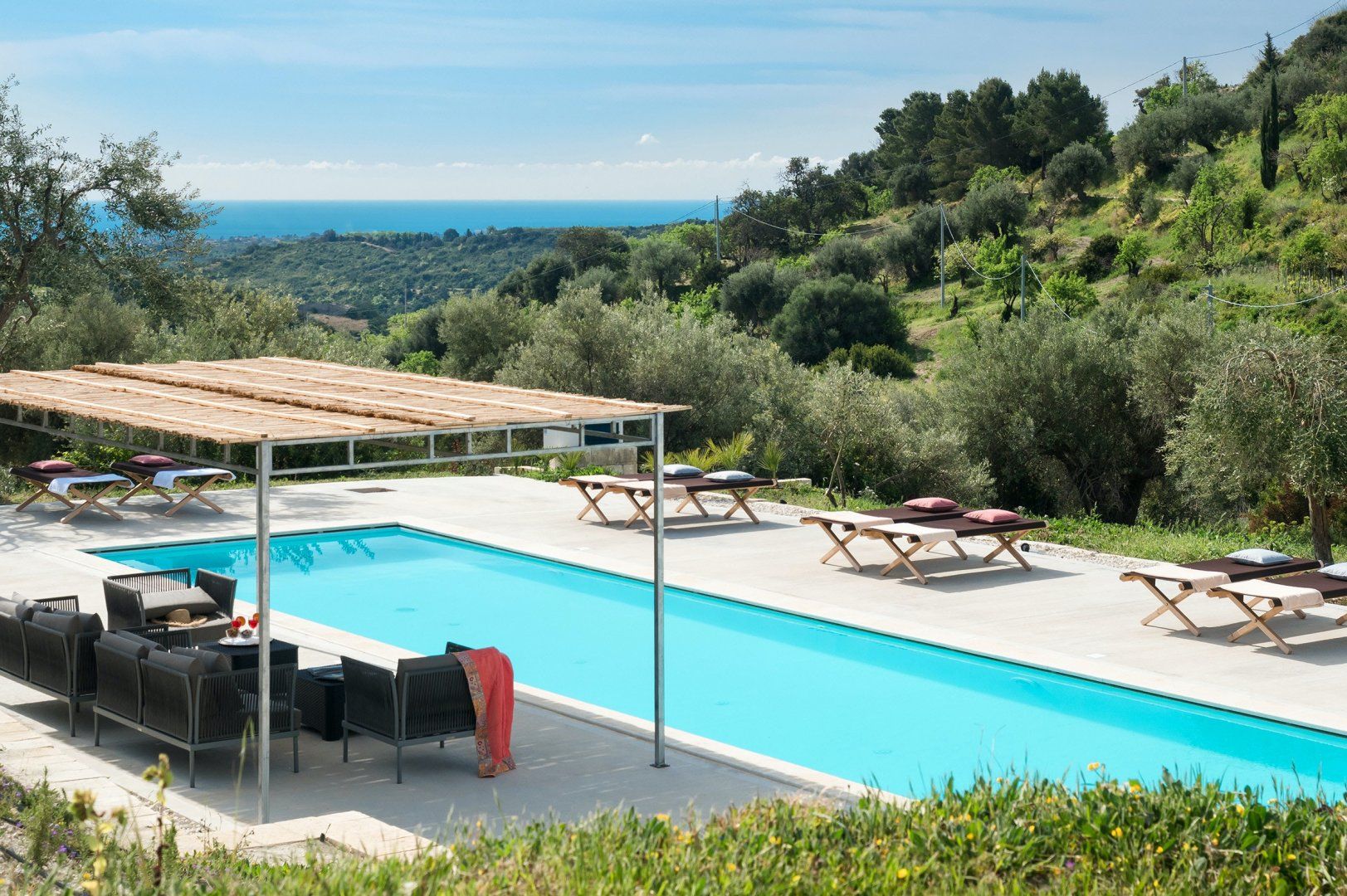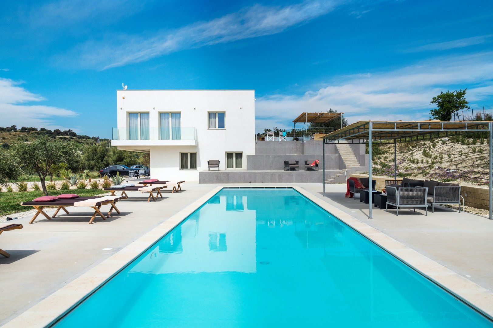 This home is a picture of Sicilian modernity – the word sleek doesn’t quite cut it. This dazzling white villa sits amongst a sprawling backdrop of olive-tree-studded hills and offers a sumptuous experience for a family or group of friends seeking rural refinery and Ionian vistas.