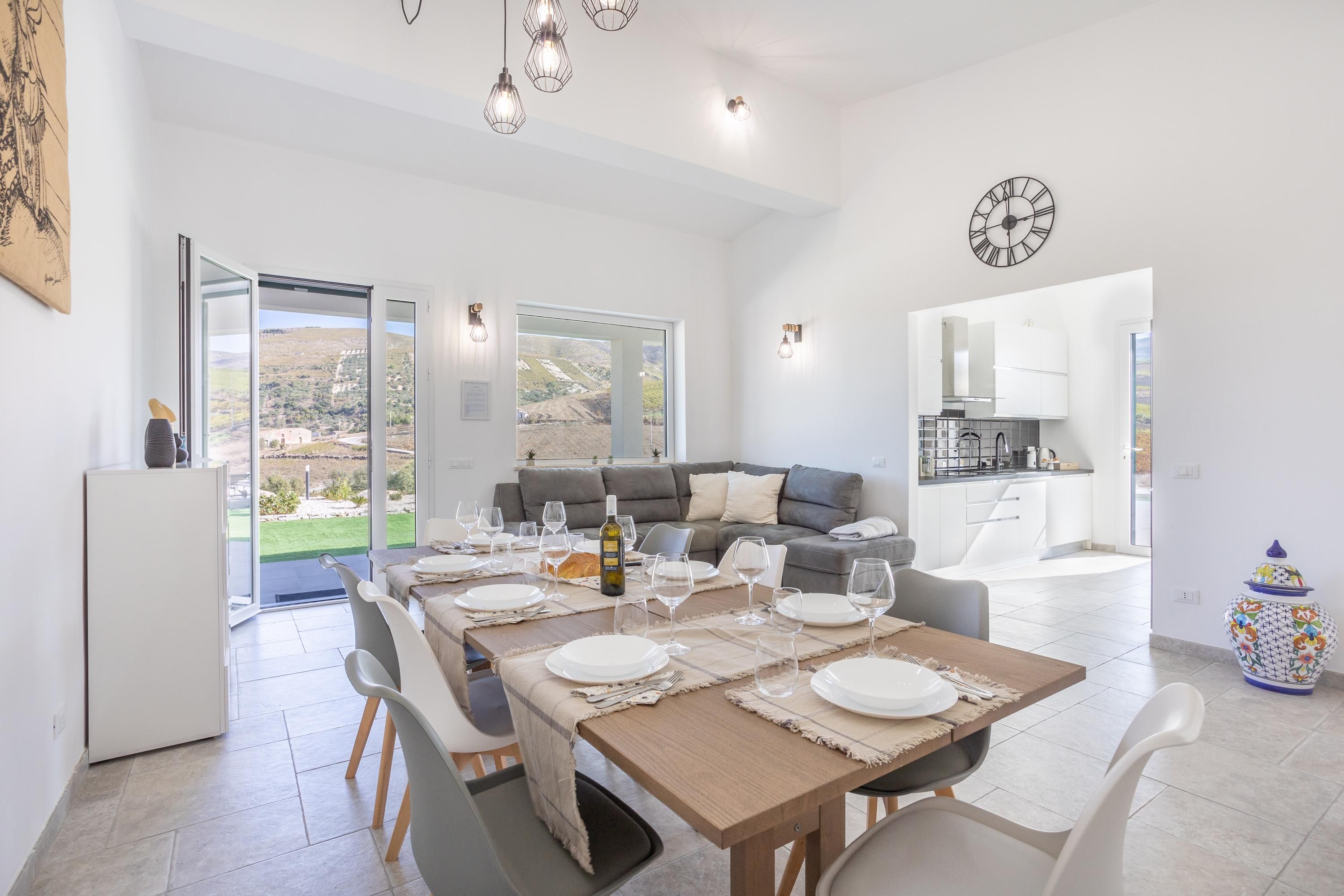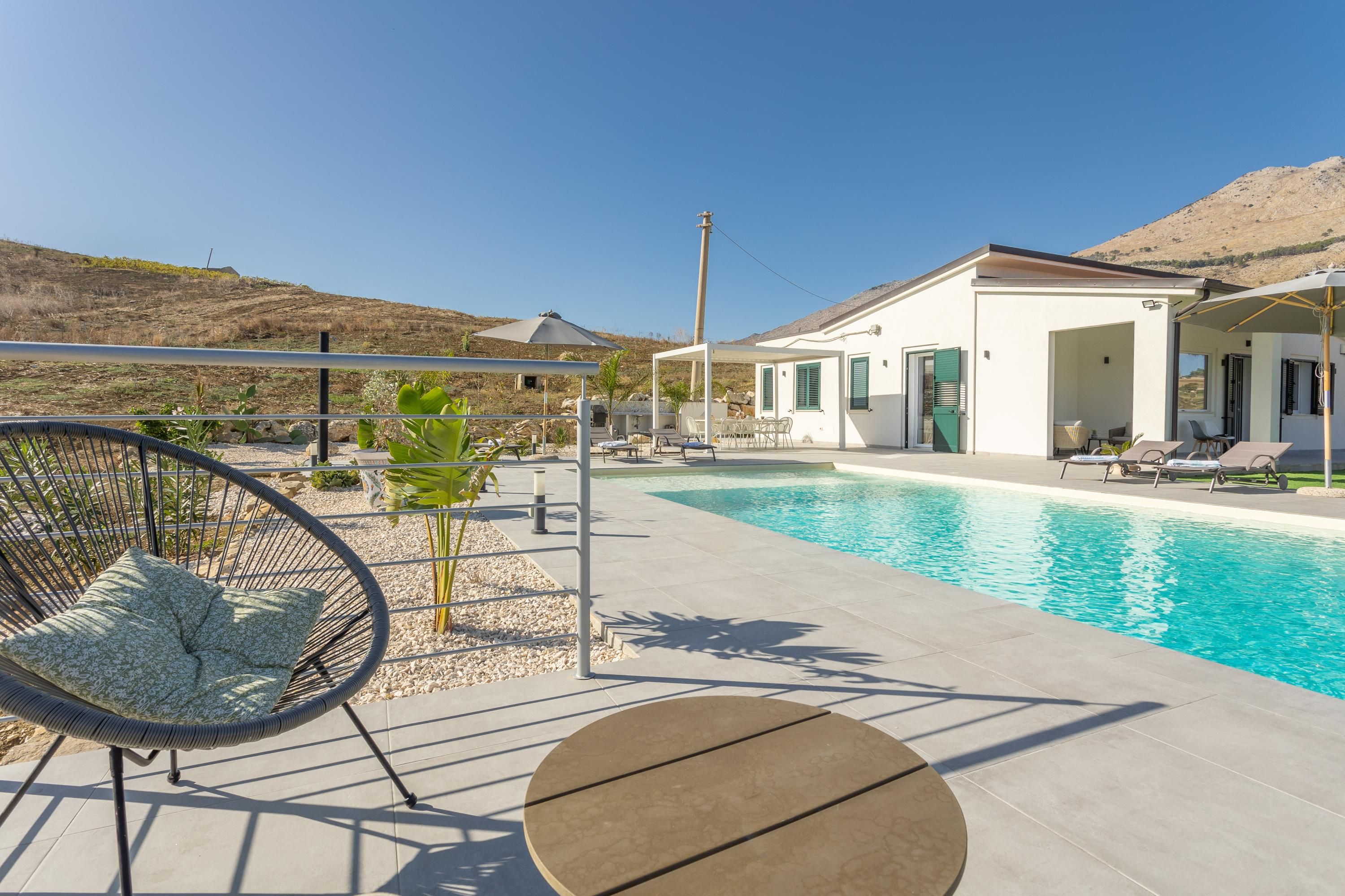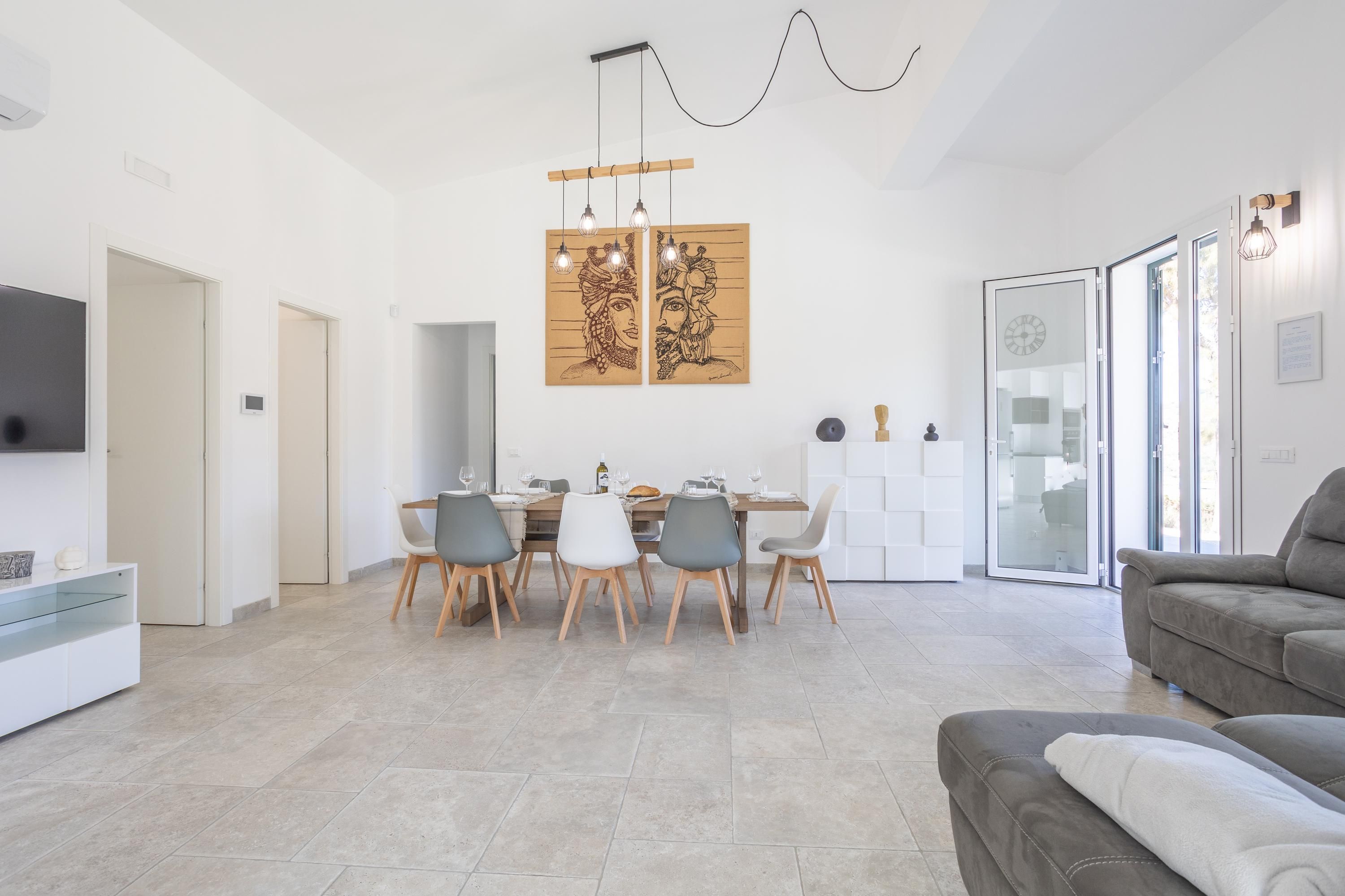 This villa is just a short drive from the beach, in Trapani’s Balata di Baida. Ideal for a family or a group of friends, there’s plenty of space both inside and out. Outside, you can splash about in the salt-water swimming pool, dine alfresco on the terrace, and admire the countryside views. Inside, you’ll have everything you need for a comfortable stay, including a fully-equipped kitchen and an open-plan living and dining space, perfect for gathering together after a day in the sun.