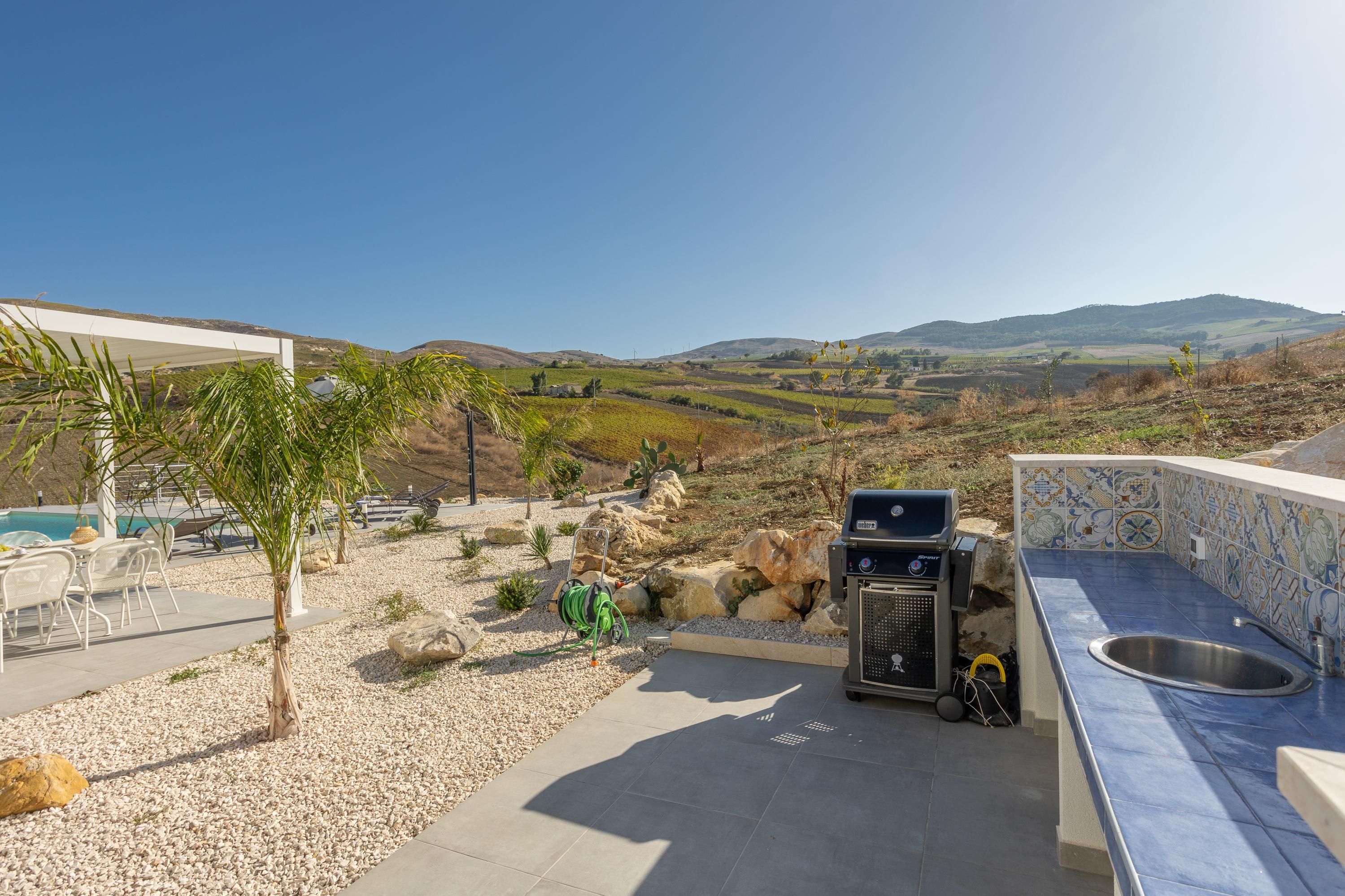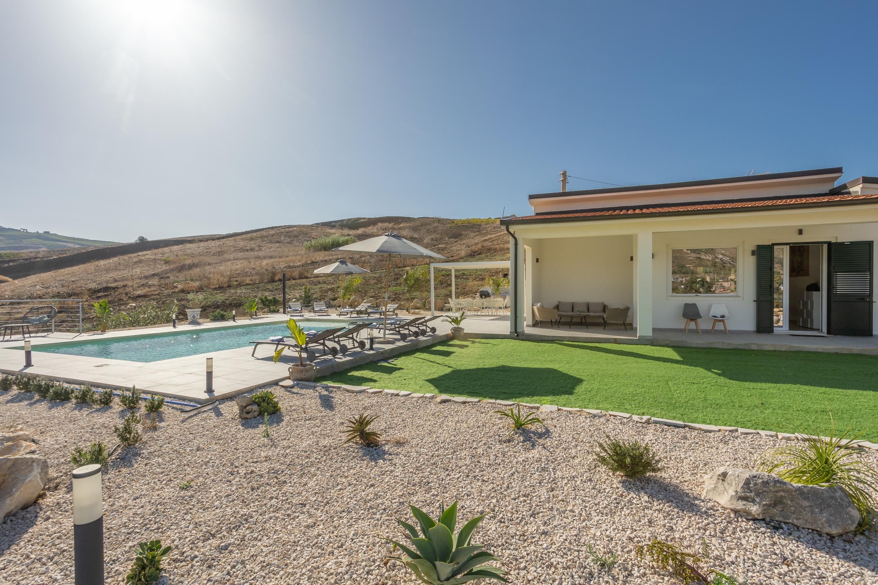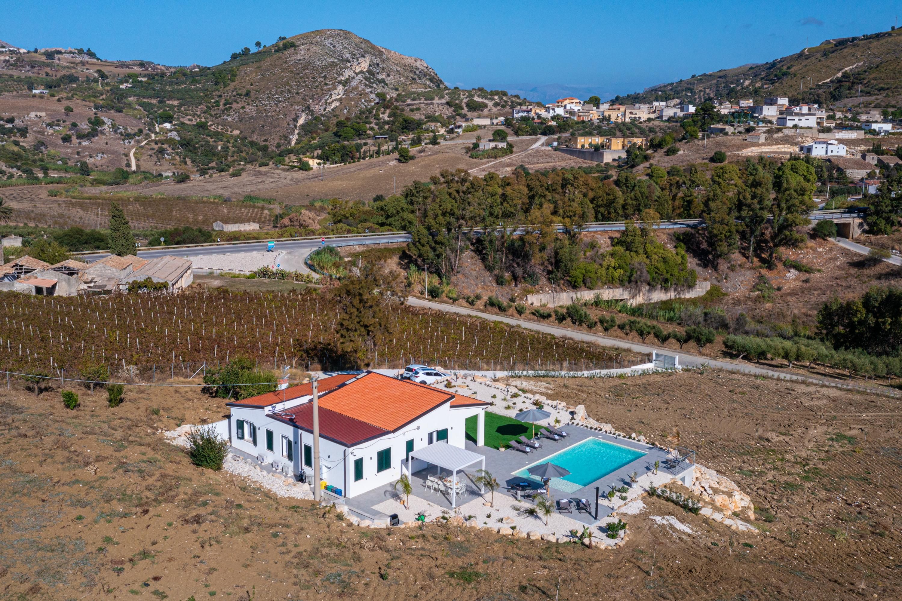 This villa is just a short drive from the beach, in Trapani’s Balata di Baida. Ideal for a family or a group of friends, there’s plenty of space both inside and out. Outside, you can splash about in the salt-water swimming pool, dine alfresco on the terrace, and admire the countryside views. Inside, you’ll have everything you need for a comfortable stay, including a fully-equipped kitchen and an open-plan living and dining space, perfect for gathering together after a day in the sun.