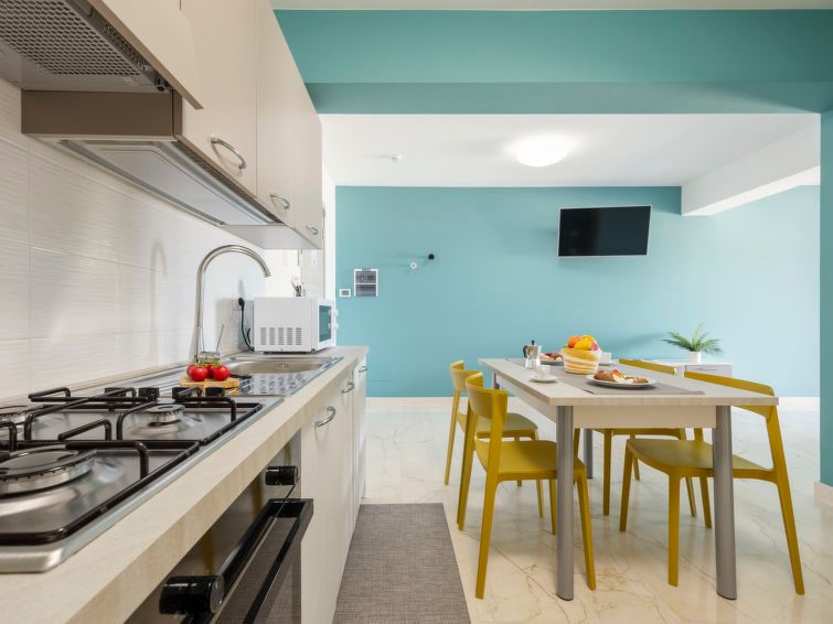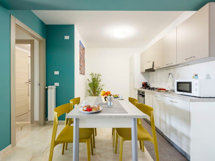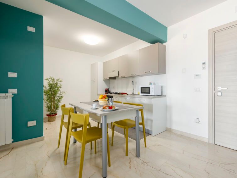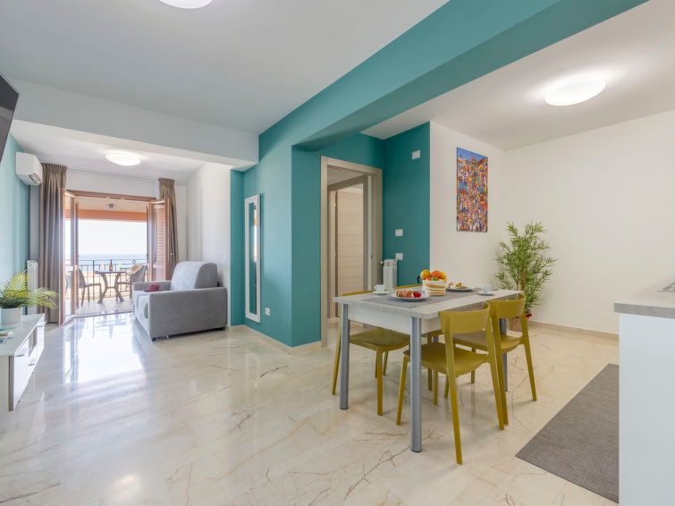 "Pirandello", 2-room apartment 70 m2 on 3rd floor. Bright, comfortable and tasteful furnishings: living/dining room with 1 double sofabed, international TV channels, air conditioning and forced-air heating. Exit to the terrace. 1 double bedroom with TV, air conditioning and forced-air heating.