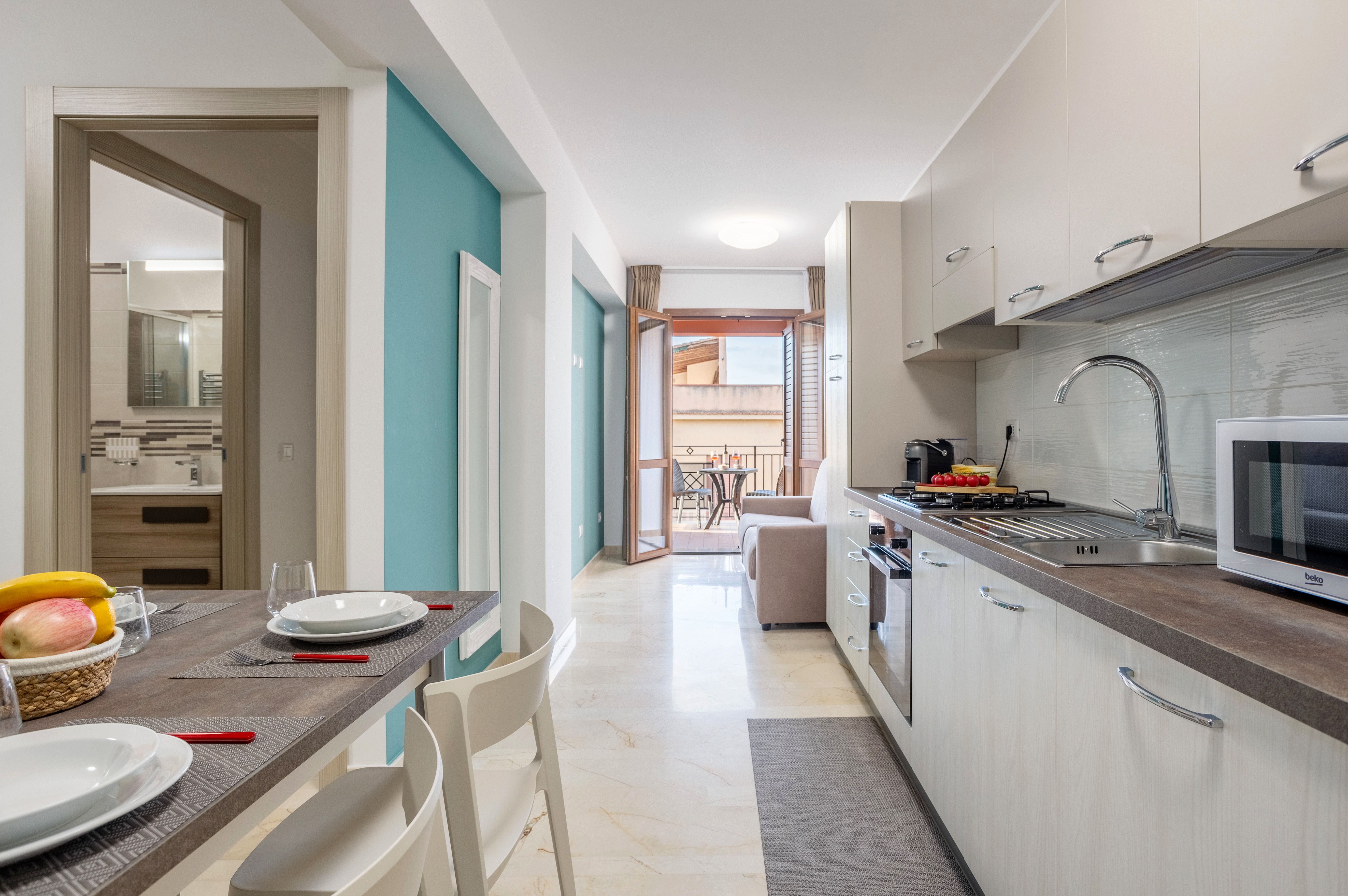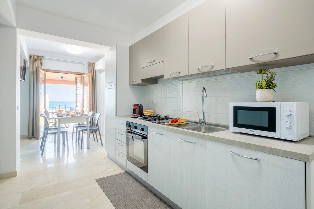 Wake up to the sounds of the sea from your private balcony. This apartment is just a five-minute stroll from the beach. Inside, it’s bright and airy, with two double bedrooms and plenty of space for dining as a group. Balestrate itself has a relaxed vibe, dotted with pretty piazzas, local trattorias, and historic buildings, while nearby hiking trails and vineyards make it easy to mix outdoor adventures with a taste of Sicilian wine. A serene base for sun-soaked days by the coast.
