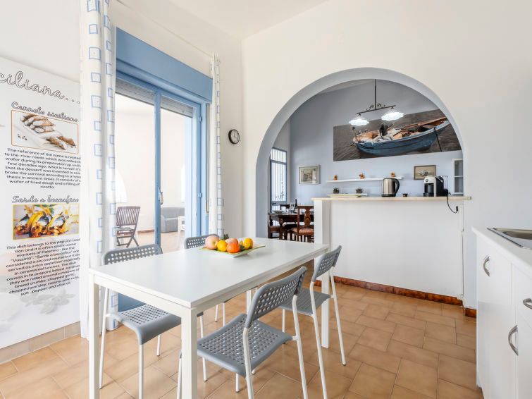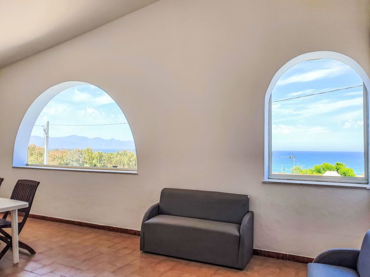 "Terrazza sul Mare", 3-room apartment 80 m2 on 1st floor. Simple and comfortable furnishings: living/dining room with 1 double sofabed and TV. Exit to the balcony, to the terrace. Entrance hall with air conditioning and forced-air heating. 1 double bedroom with fan. Exit to the balcony.