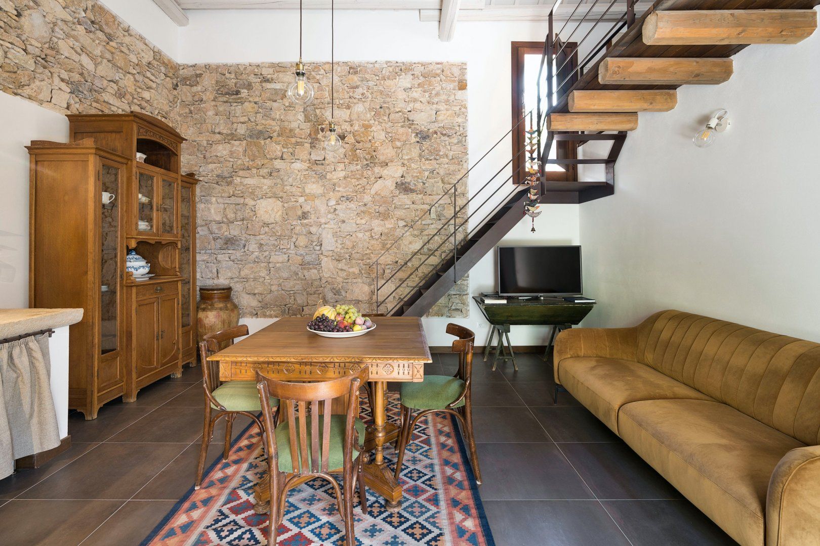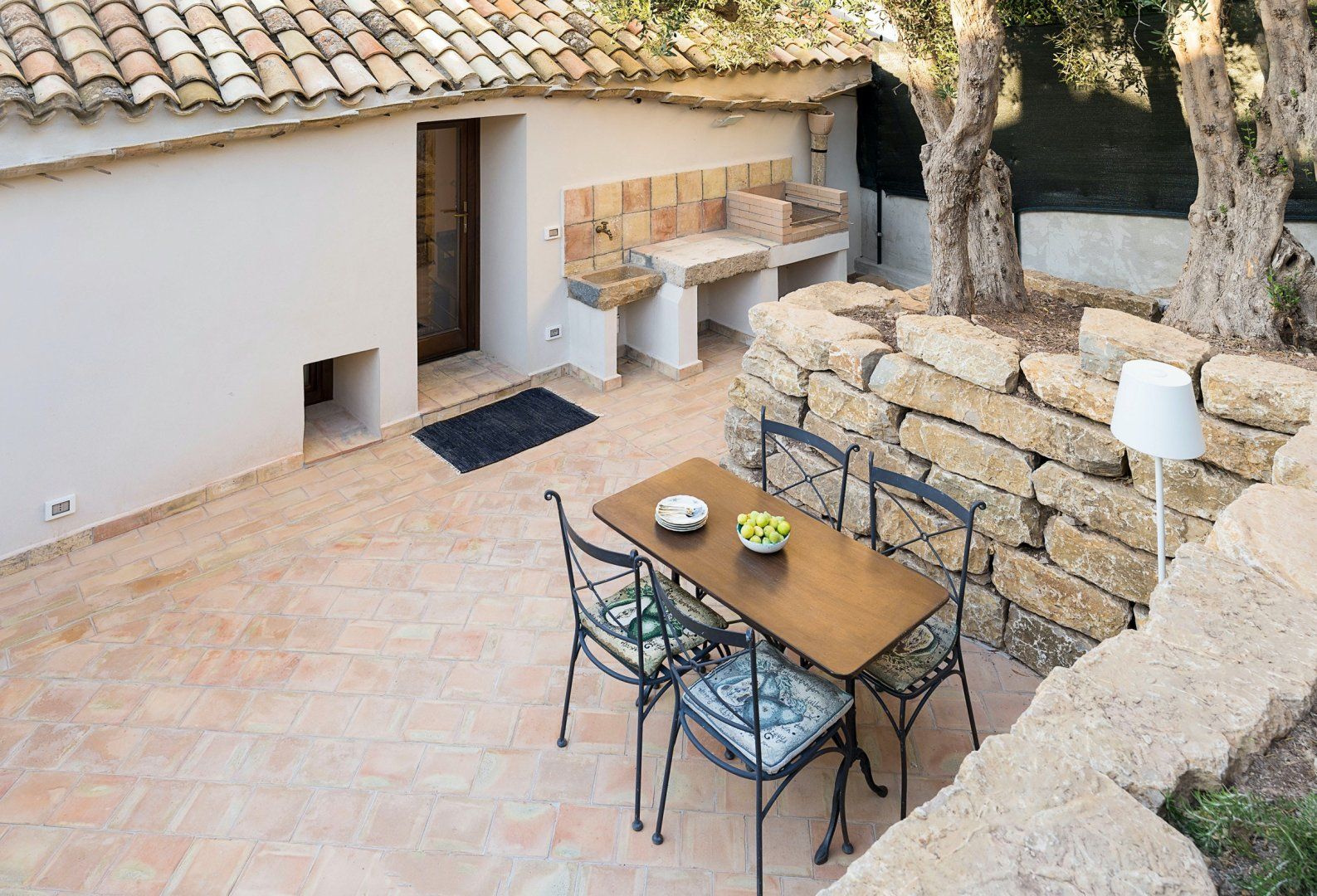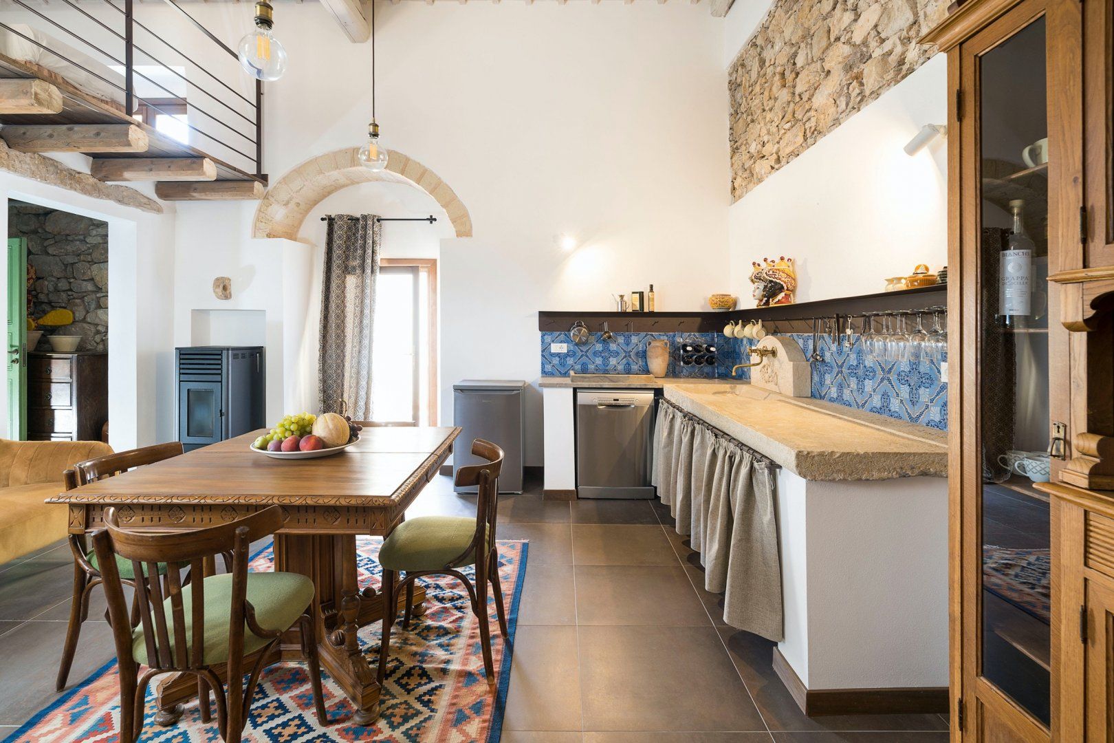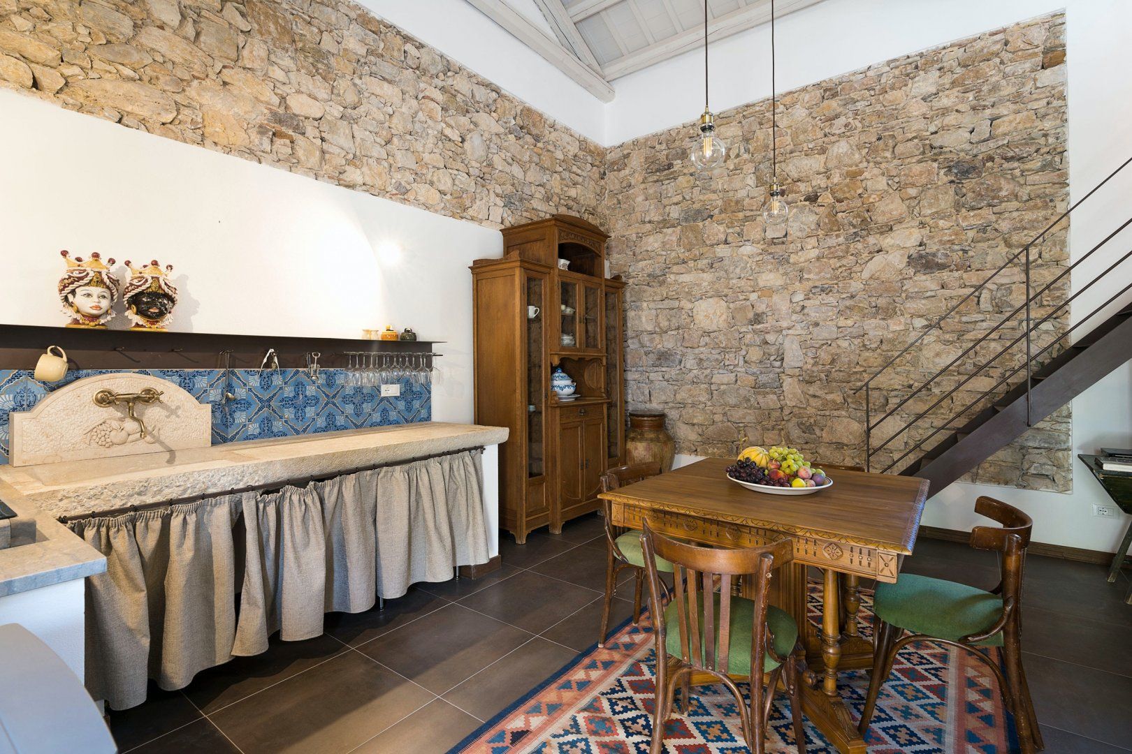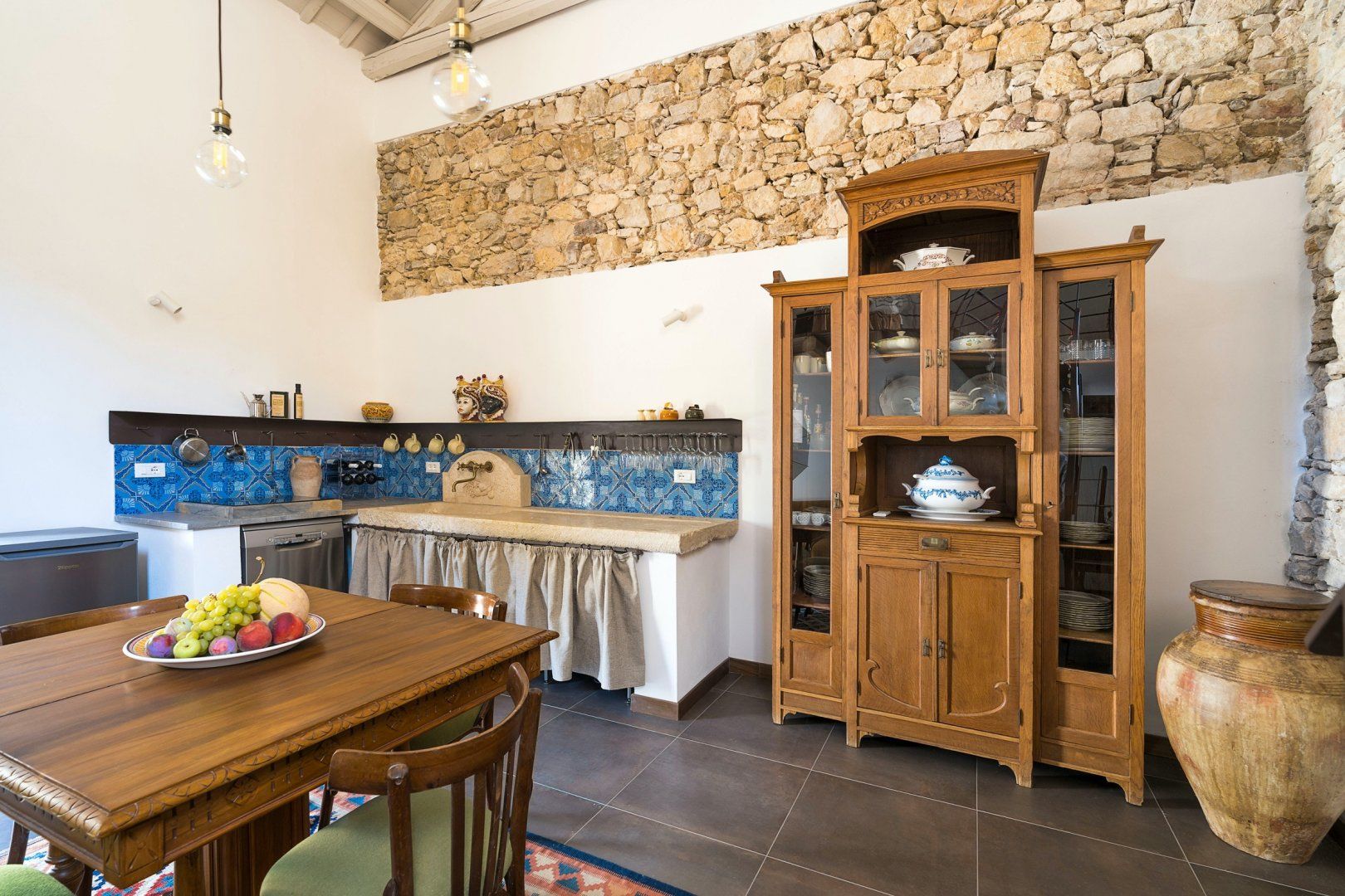 For a wholesome getaway in the Sicilian countryside, it doesn't get much cosier than this. With traditional kitchen tiles, exposed brick, and a sink of pure Italian stone, it feels like you've stepped right into a family home. Perfect for those that like to stay somewhere with character, personality, and that feels like a home from home. The furnishings are timeless – you'll love sitting around your dining table with a cup of coffee, admiring the traditional touches and the tall wood-beamed ceilings.