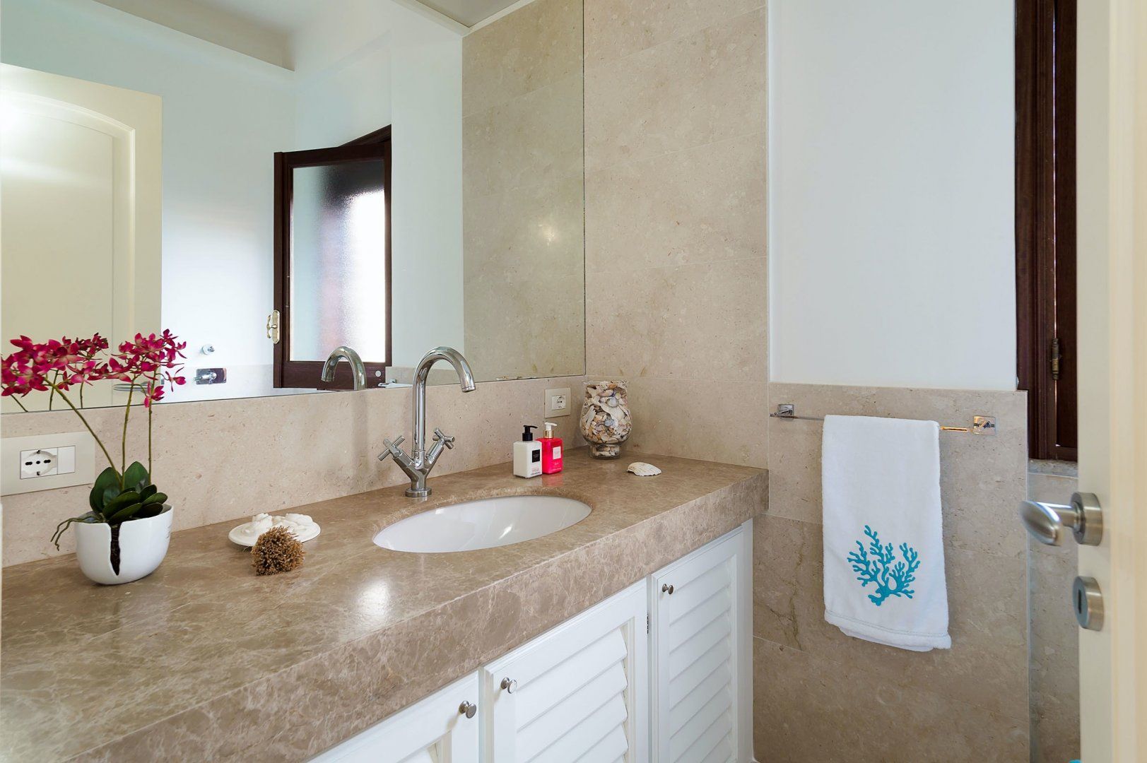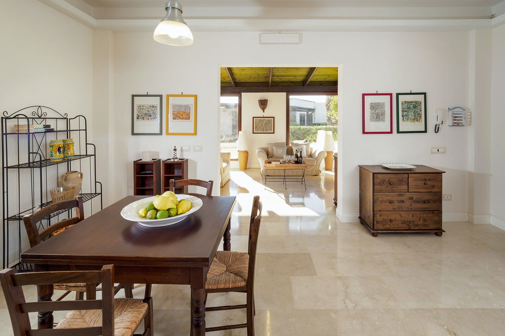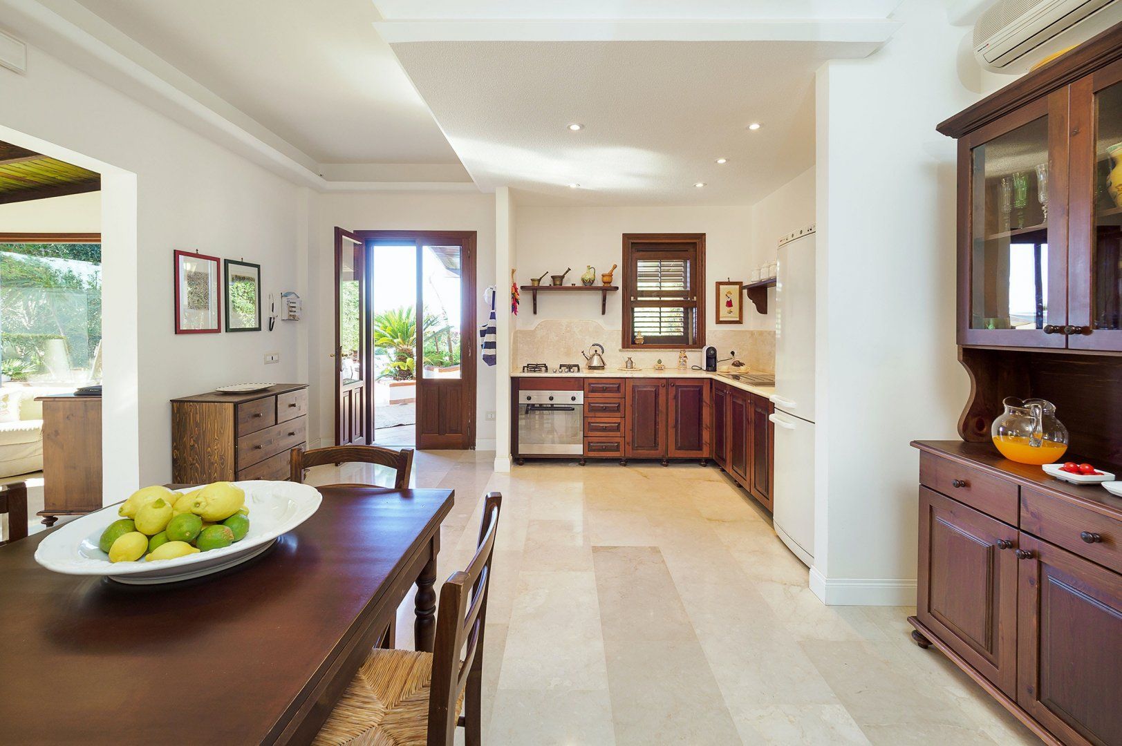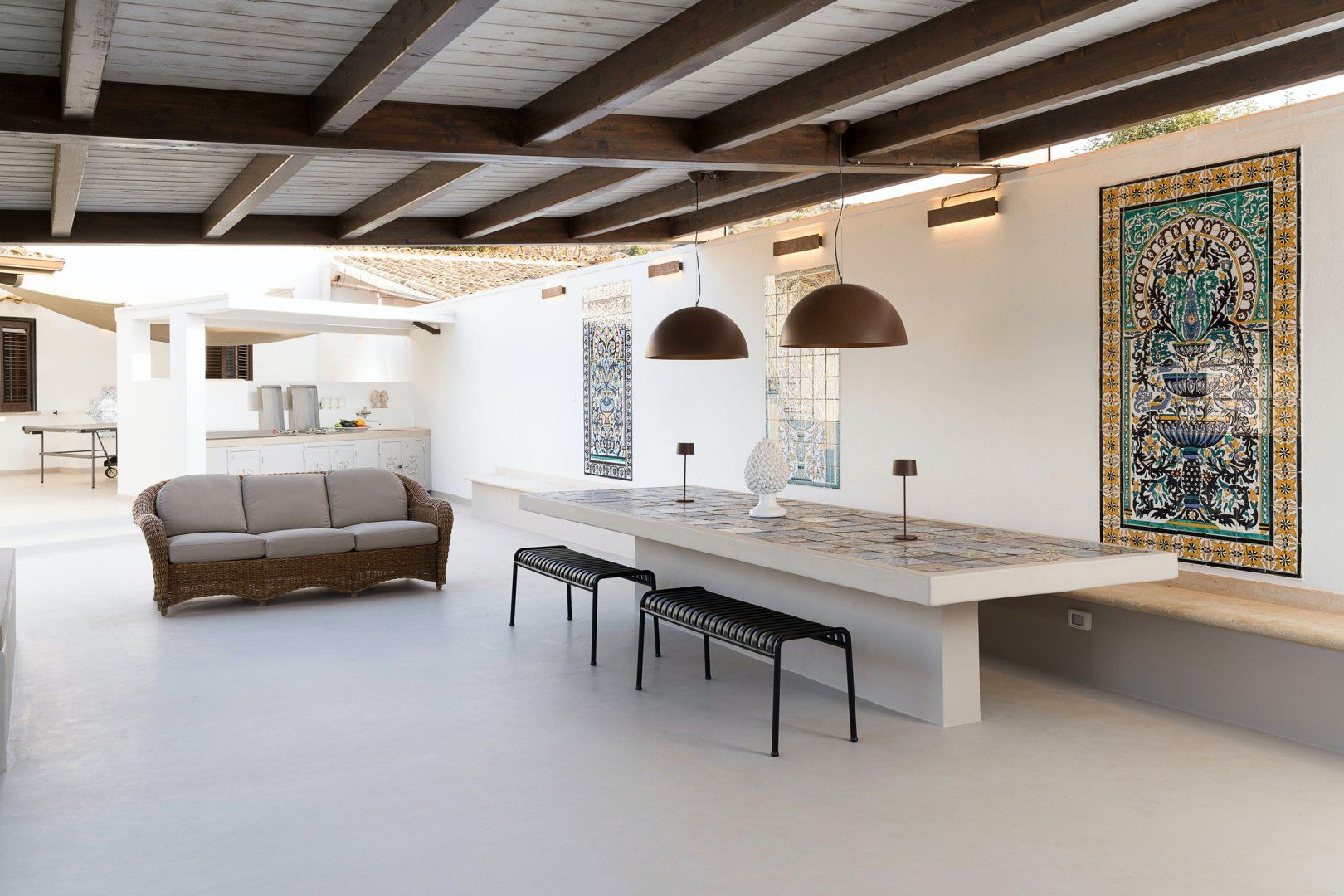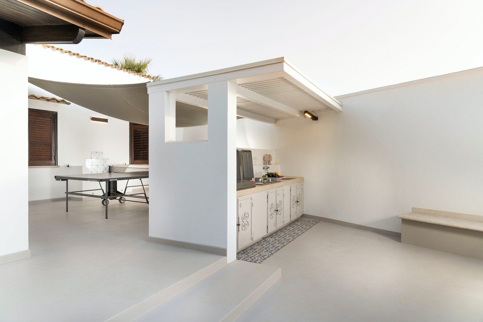 The impressive terraced lounge, which is shaded by an awning, provides the ideal spot to begin your days with a morning espresso overlooking the sea, before stretching out on the loungers to catch the Sicilian rays. The soft salty breeze will help you keep cool, whilst the refreshing waters of your pristine pool offer a revitalising repose from the sun. The outdoor dining area is a focal point of this home – it’s minimally modern, modestly traditional, and seamlessly elegant. Fire up the barbecue and set to preparing an indulgent dinner spread for your loved ones in the sleek outdoor kitchen – we suggest locally-sourced prawns on the plancha.