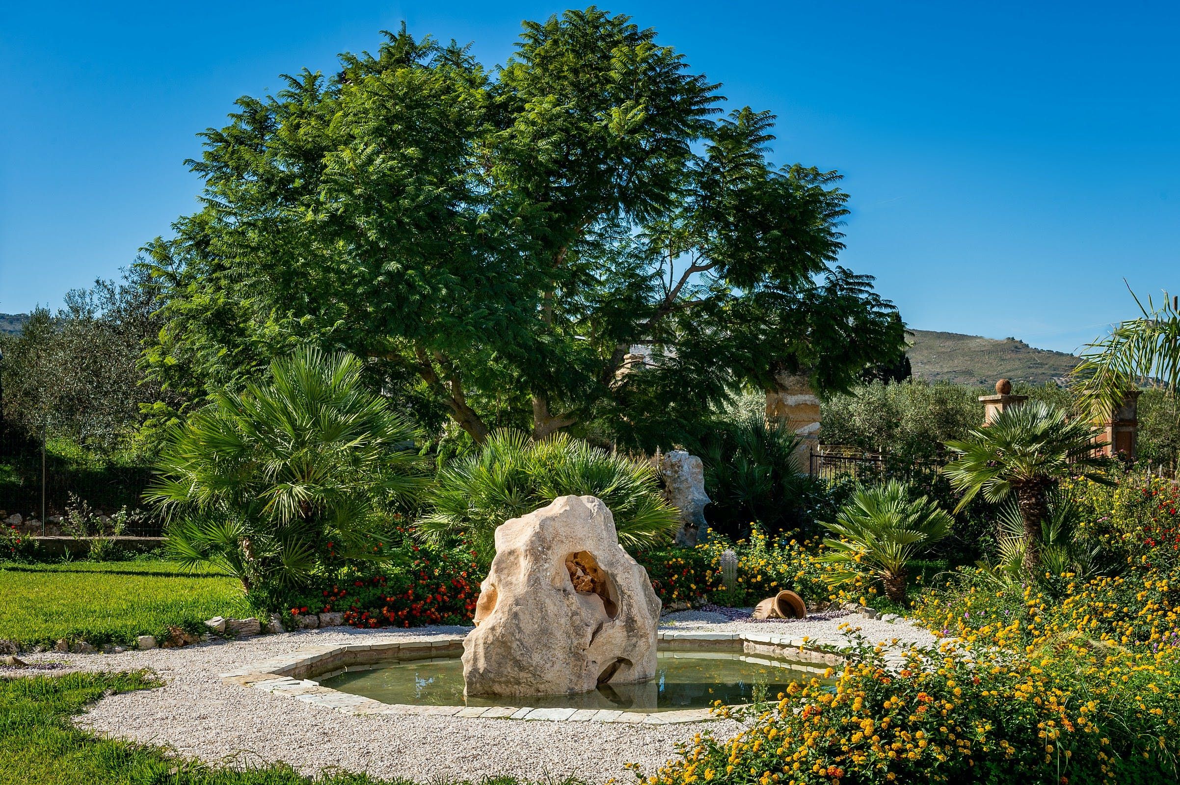 Hikers and beach bunnies rejoice – this petite villa is a short drive from the scenic trails of Zingaro Nature Reserve and the buzzing coastal town of Castellammare del Golfo. All on the ground floor, you step straight into a rustic-style kitchen and dining room with a sofa. There’s not really a full living room, per se, but the vast outdoor terraces more than make up for this. Days are designed to be spent cooking in the outdoor kitchen, enjoying alfresco dining with a view of the rugged Sicilian mountains and lounging by the curvy swimming pool.