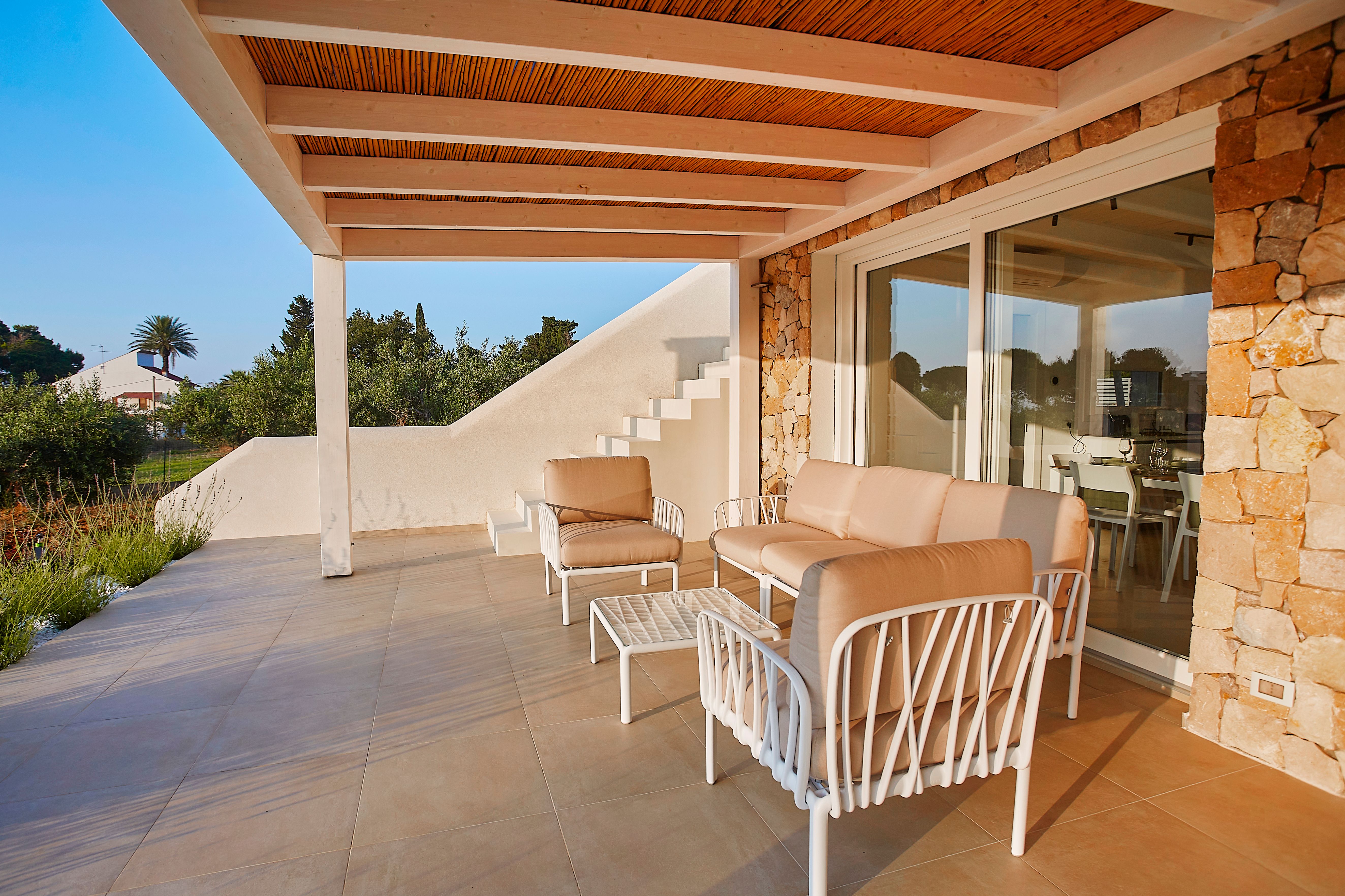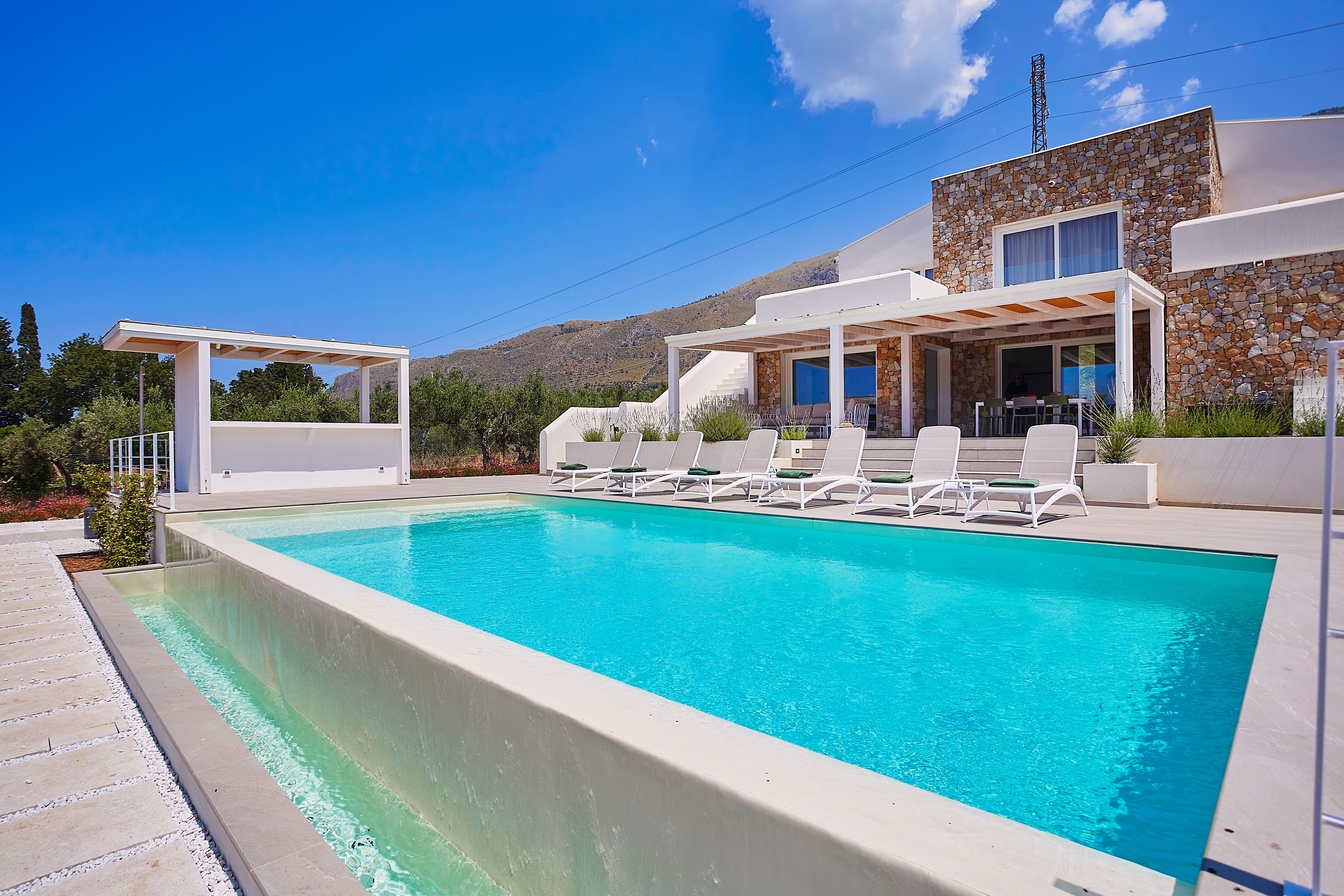 Situated conveniently between the bustling city of Palermo and the charming beach town of Trapani, this villa is an ideal summer destination. We love the many shaded outdoor nooks that flow into the sunny spaces, letting you easily flit between them. Two guests will be sleeping on a sofa bed in the upstairs living room, but it’s a small price to pay for all of the home’s other features. When you’re ready to explore, discover the fortress on the harbour in the nearby beach town of Castellammare del Golfo – just a ten-minute drive away.
