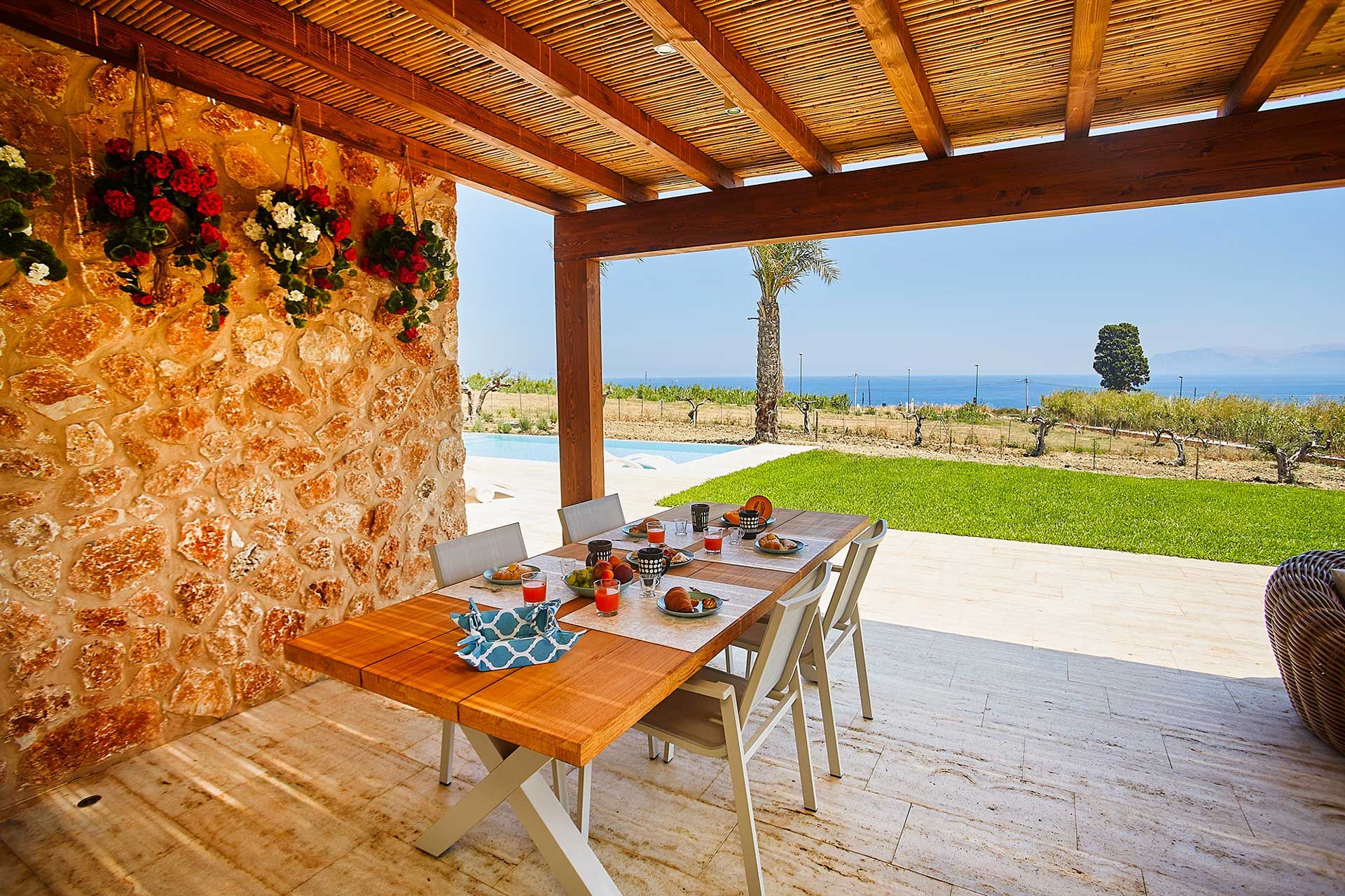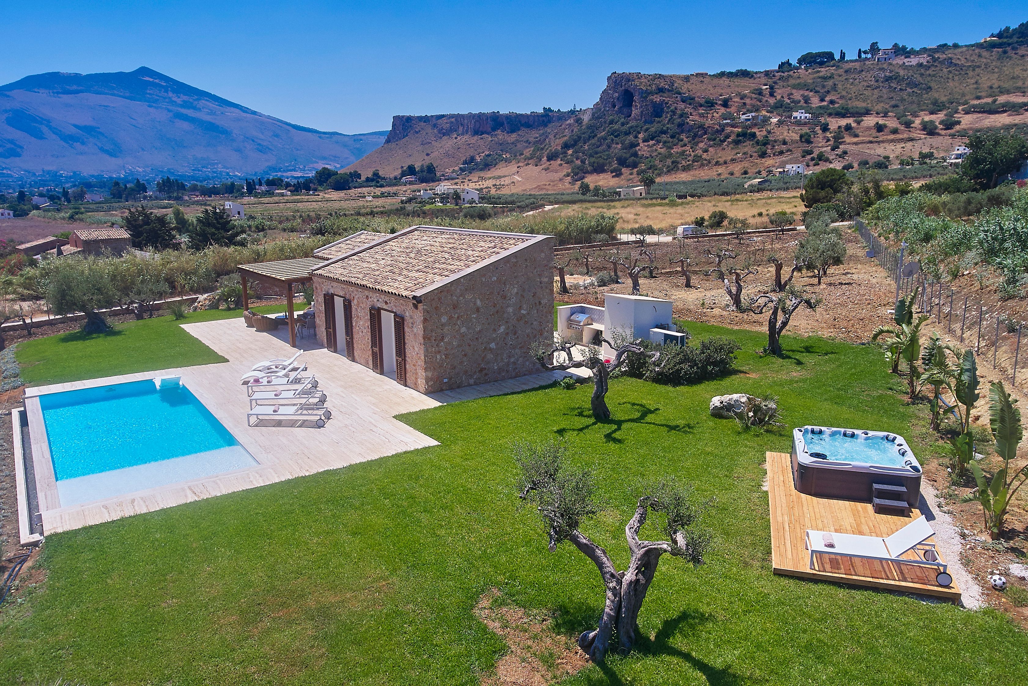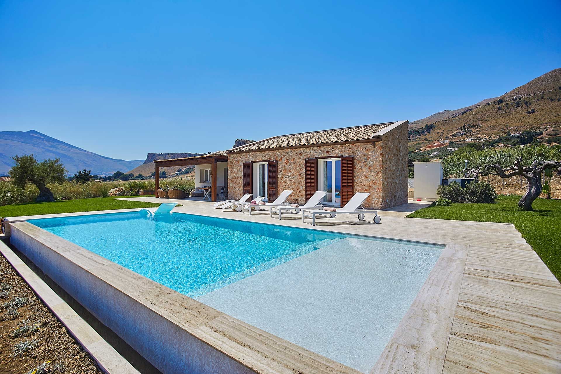 This villa is a tranquil haven, a short walk from quaint Scopello. There is a small supermarket and a great restaurant nearby, with even more options in the village – but when you see what this home has to offer, you’ll probably stay in more than planned. It’s the pristine pool, open gardens and shady terraces that made us fall in love with this place. If you’re staying between November and the end of March, the swimming pool is closed, though the hot tub is open all-year for a dip with mountain views. The interiors feel fresh and modern – and while it’s a bit tight with a sixth guest on the sofa bed, it’s still a serene escape.
