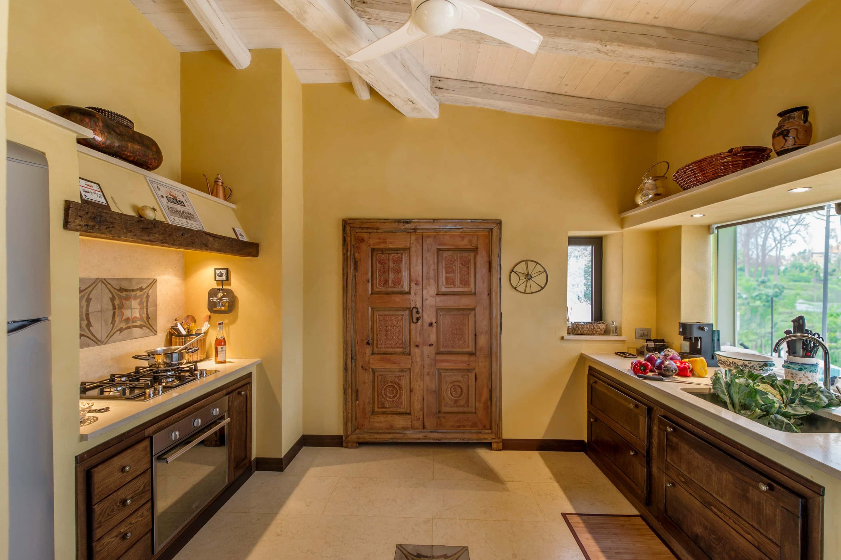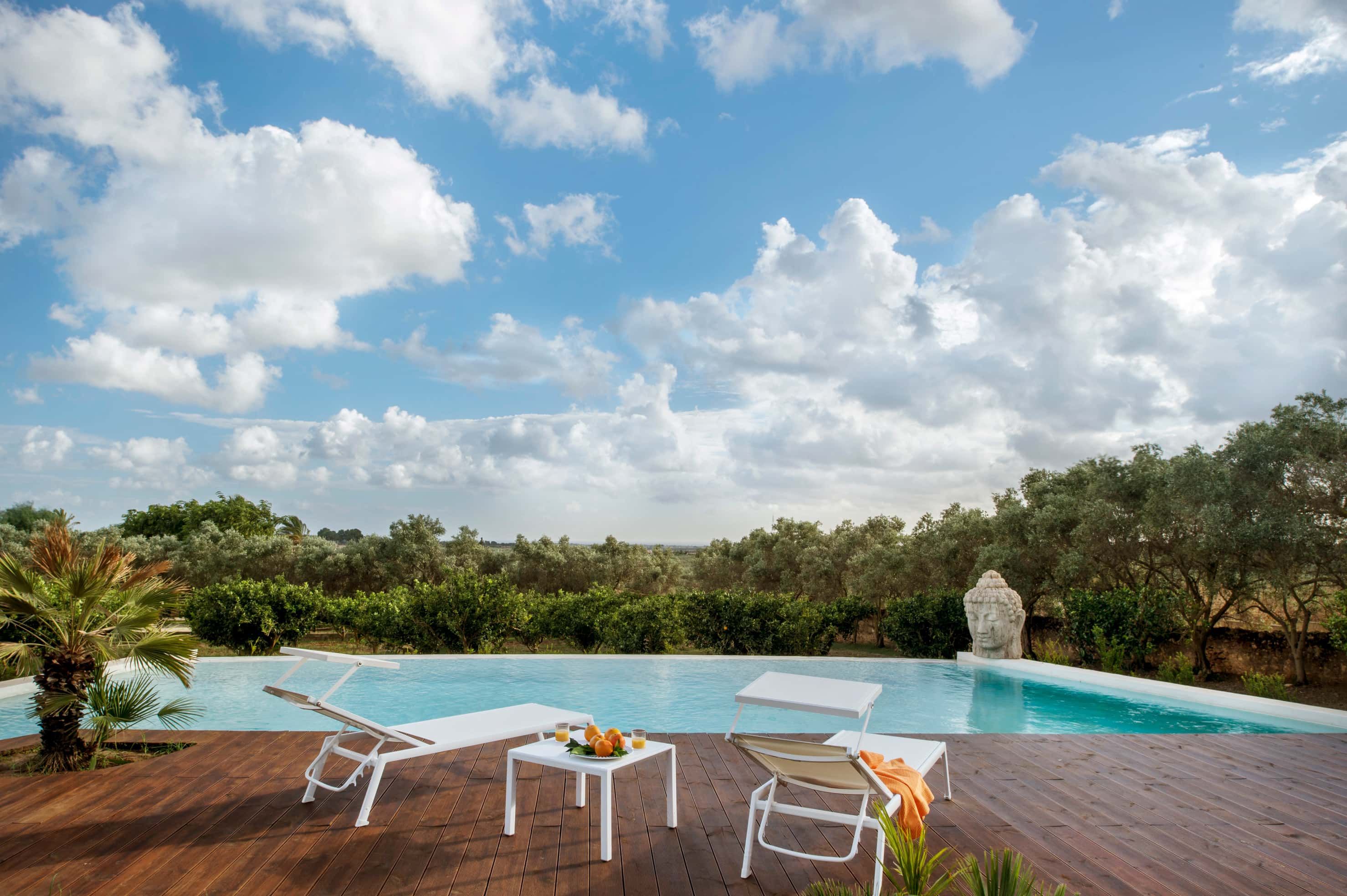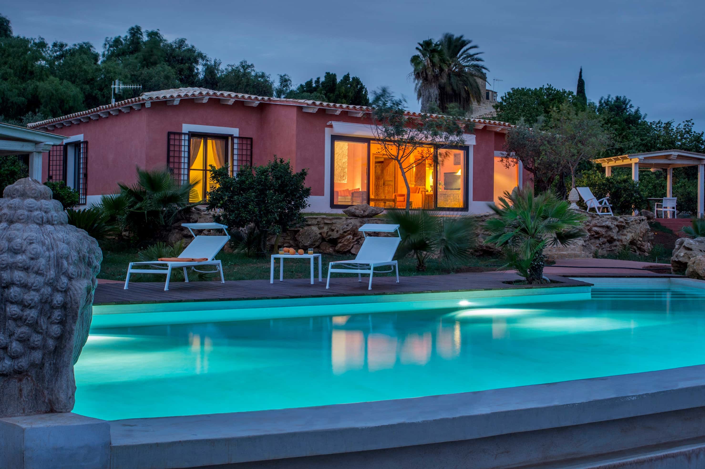 This Sicilian villa is all about peace and space. Surrounded by citrus groves, olive trees and lush gardens, it’s a quiet spot to recharge. The infinity pool is a highlight, perfect for cooling off or just taking in the view, and there are two shaded gazebos and a barbecue for relaxed meals outdoors. The villa sits on the edge of Castelvetrano, so you can stroll into town for authentic restaurants, historic sights, or an aperitivo with the locals. For a day out, you can hop in the car and be on the coast in under twenty minutes.