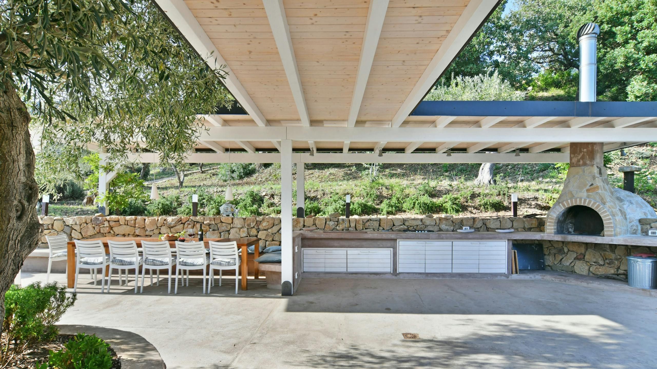 A short drive from the winding streets and sandy beaches of Cefalù, this hillside villa is tucked among olive trees with sweeping views of the sea. You can soak up the scenery from the pool or one of several terraces – the little sundeck is the perfect perch come sunset. Bedrooms are spread between a traditional stone house and two wooden cabins, giving the place the feel of a tiny village. If we’re being picky, the kitchen’s on the smaller side for big group meals, but when the weather’s warm you’ll barely notice – there’s a wood-fired oven outside for alfresco feasts.