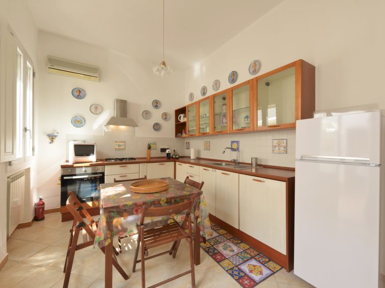 5-room villa 235 m2 on 2 levels. Comfortable and tasteful furnishings: living/dining room with satellite TV (flat screen), air conditioning and forced-air heating. Exit to the terrace. 1 double bedroom with satellite TV (flat screen), air conditioning and forced-air heating. Exit to the terrace.