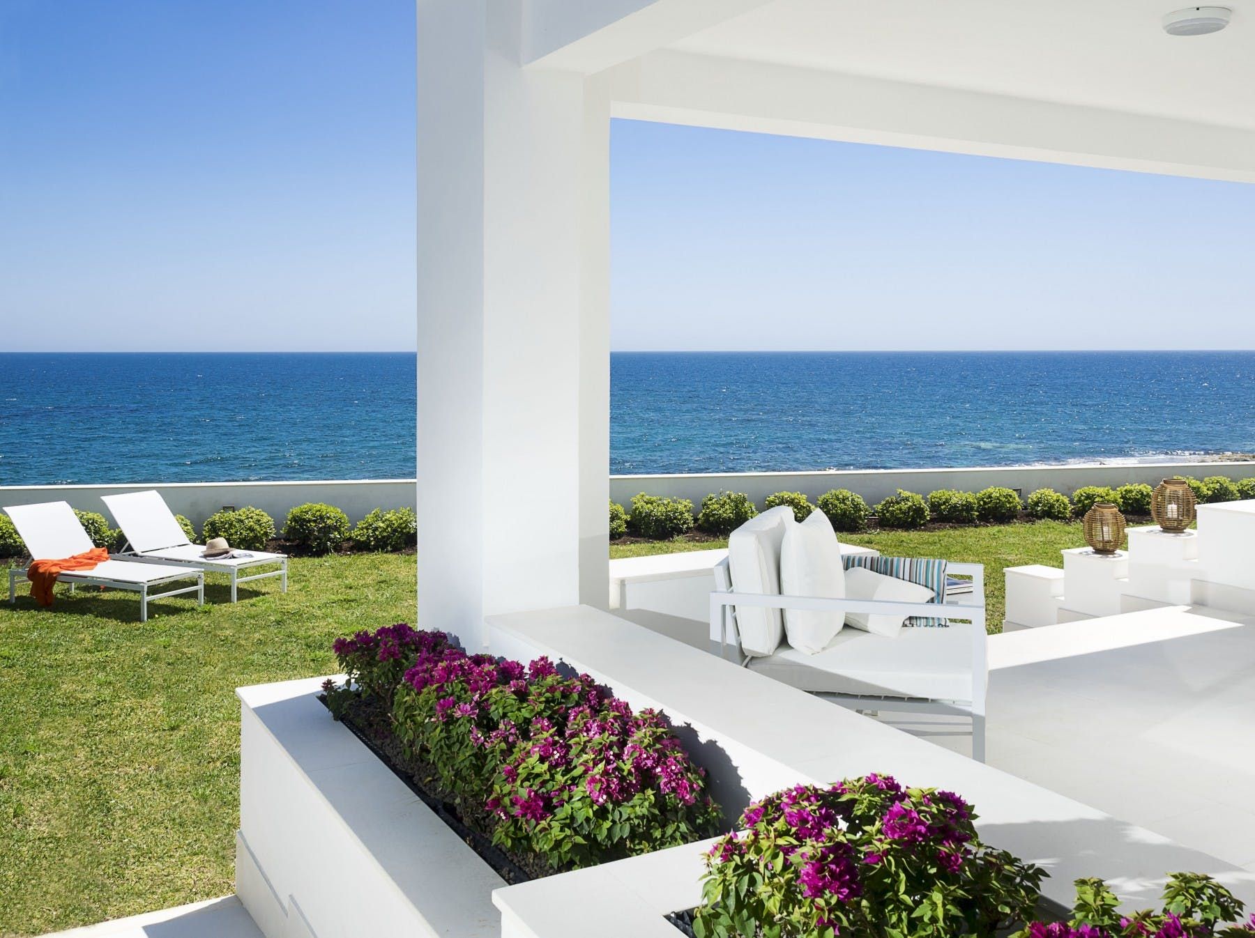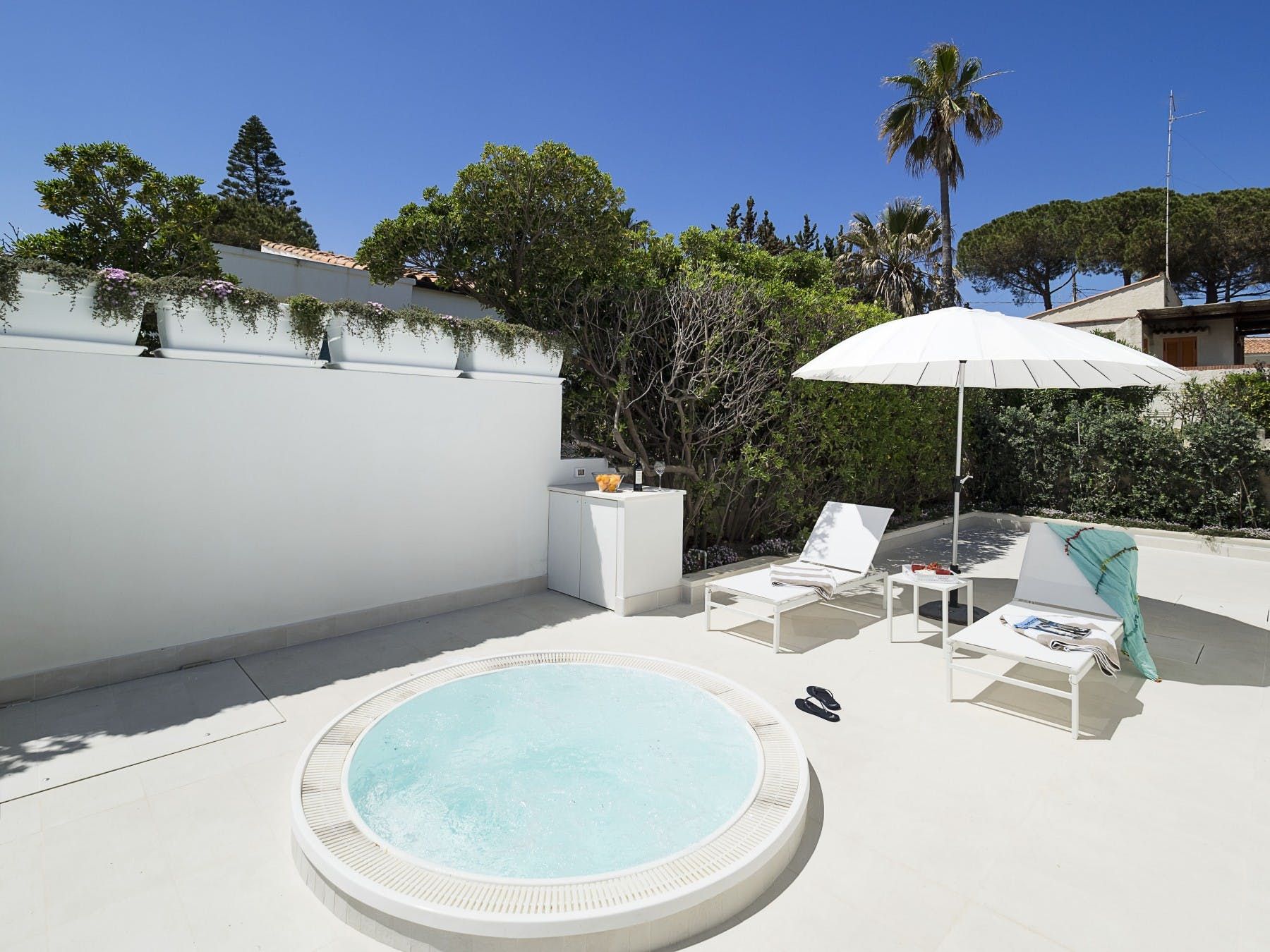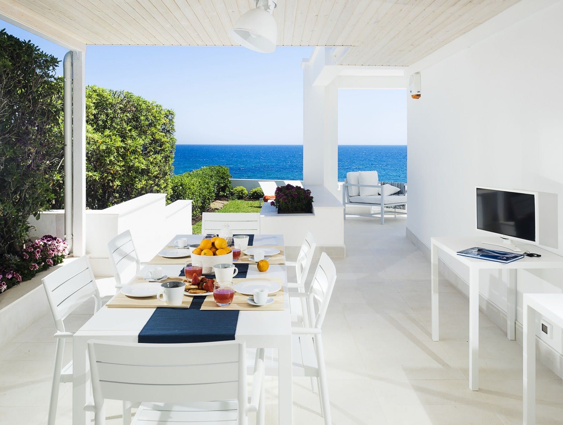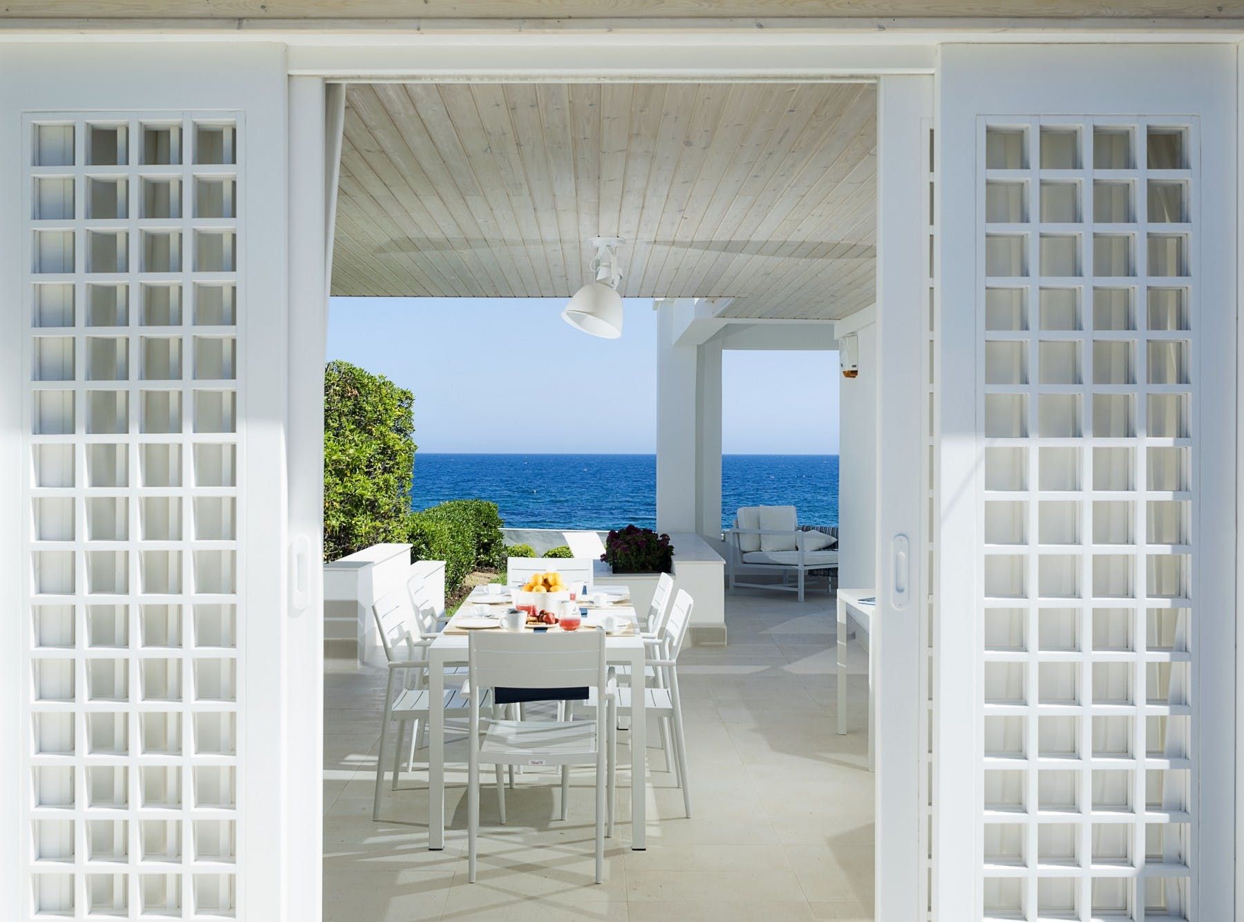 The epitome of serene, this seafront home is just steps from the soft white sands of Fontane Bianche. It sits on Sicily's south coast and overlooks the endless, two-tone blue of the horizon gliding over the Mediterranean Sea. It's delightfully peaceful, tucked away behind pruned-to-perfection hedges and a lush garden, promising privacy. Yet despite feeling completely secluded, it's well-connected to the ancient cities of Syracuse and Noto, only twenty-five minutes away by car.
