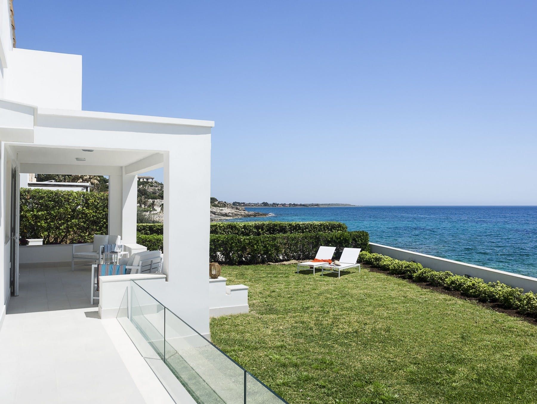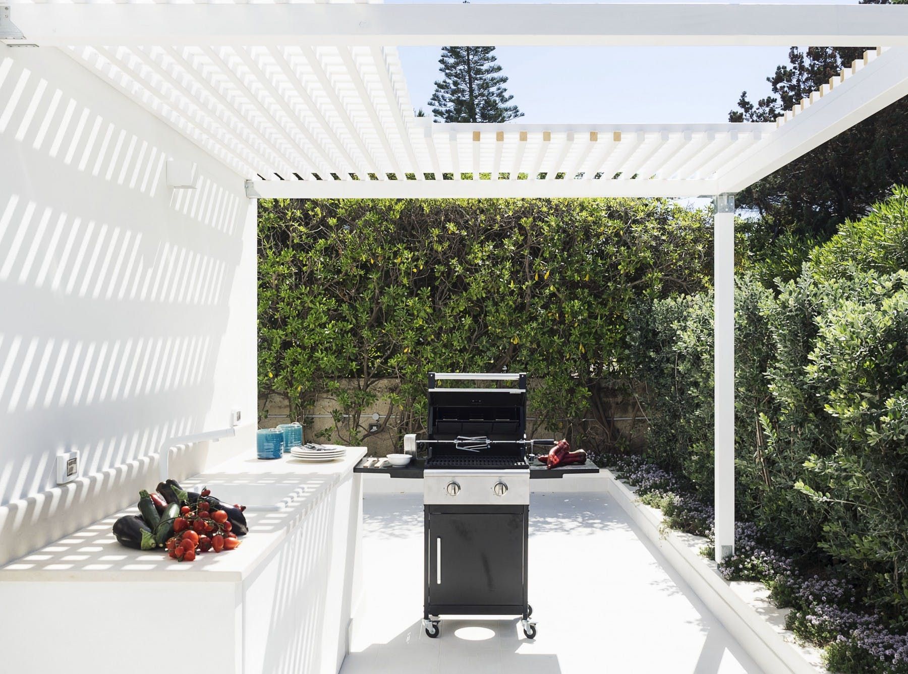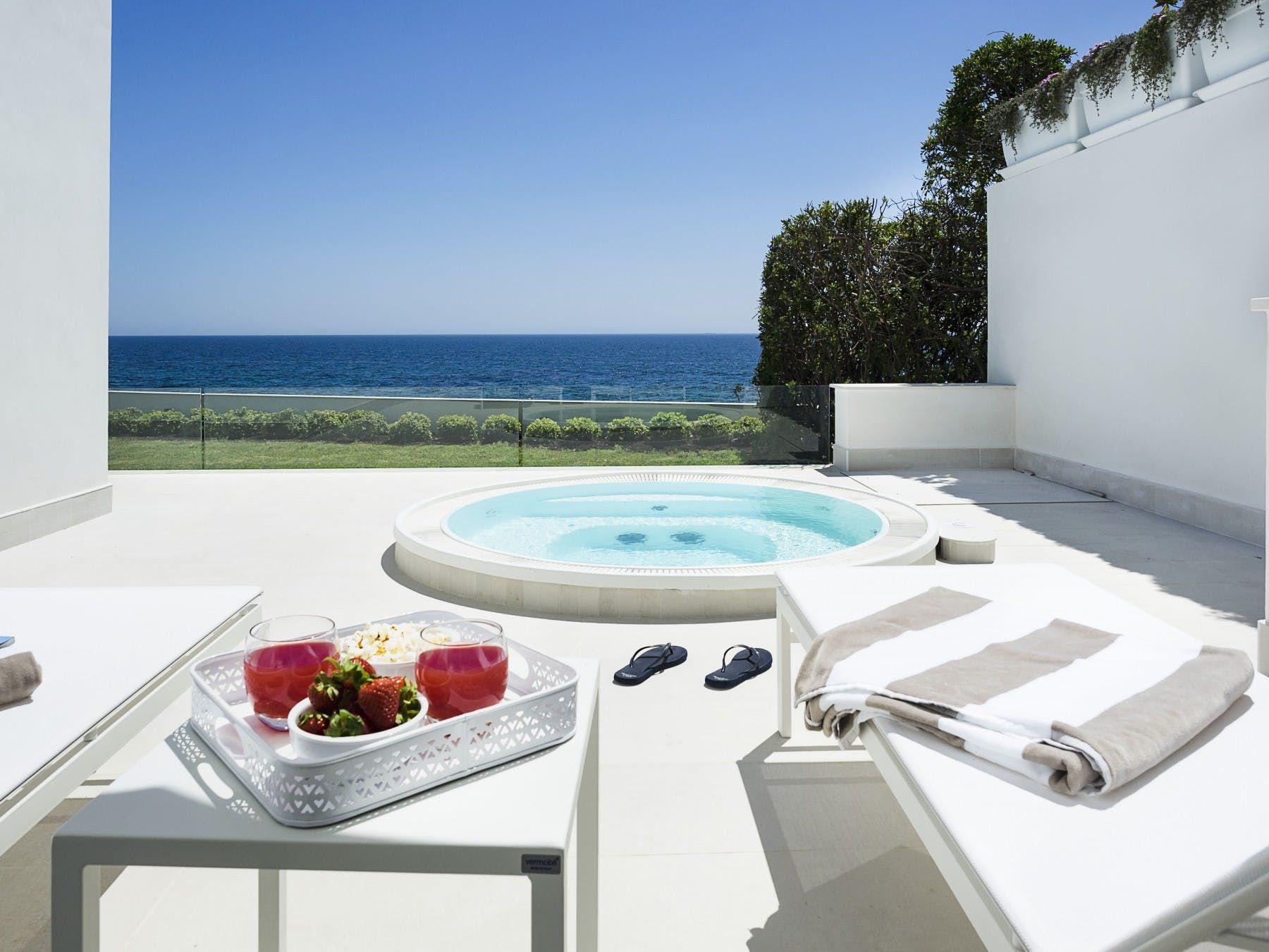 We love the interior's minimalist design aesthetic. Cloaked entirely in white, its contemporary and stylish decor is complemented by heaps of natural light, exuding coastal calm and creating a free-flowing ambience primed for relaxation. There are all the bells and whistles here for a want-for-nothing stay, including a fully equipped kitchen, though the real highlight is undoubtedly the outdoor space. An expansive terrace cocoons the interior, beckonIng you to unwind in the splendour of your surroundings. After a restful slumber, step outside to sip your coffee face-to-face with breathtaking sea views before strolling down to the beach for a morning swim. Between adventures, simmer down with a glass of wine in the jacuzzi and come sunset, fire up the barbecue for an alfresco feast.