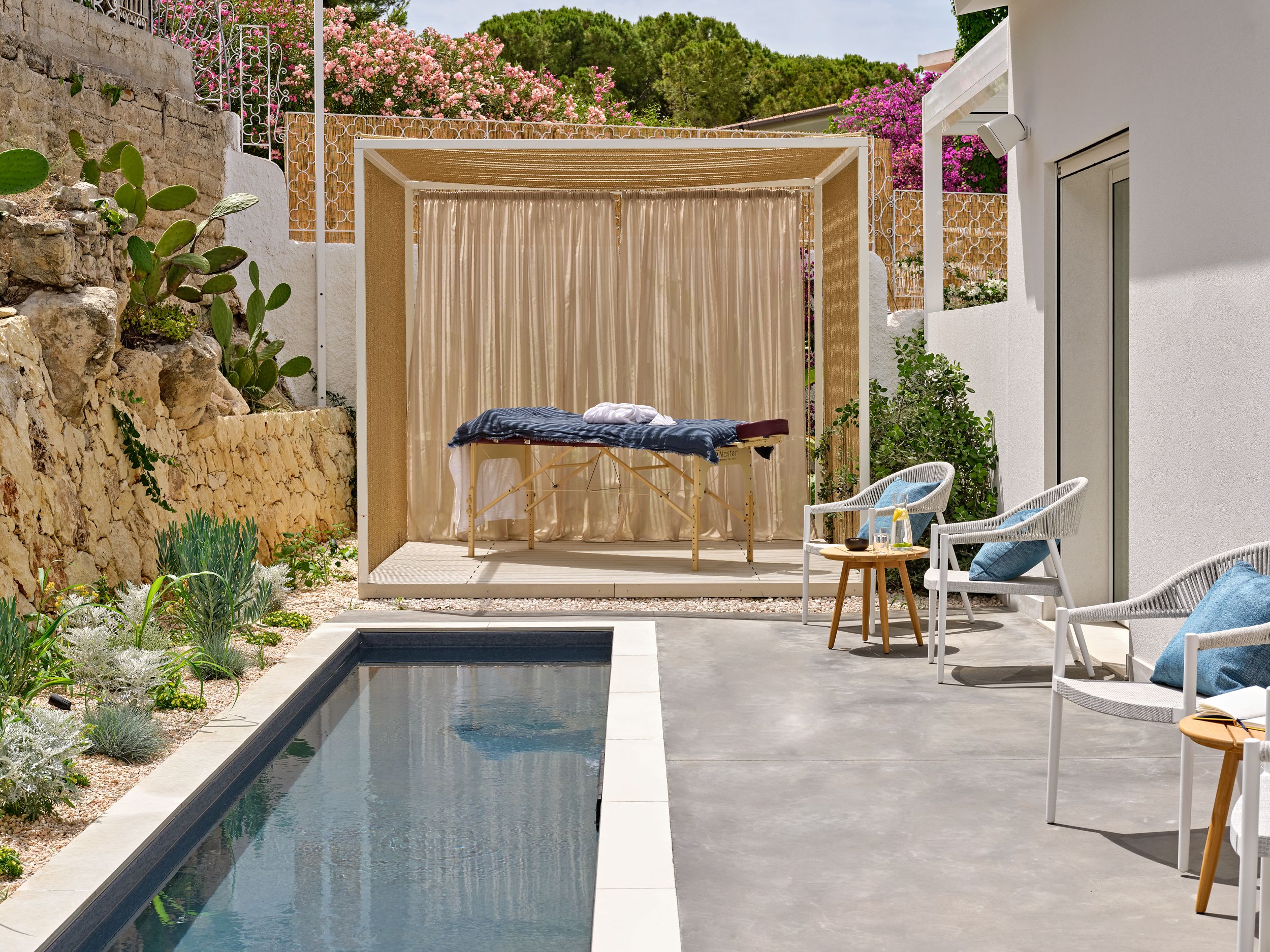 Less than 100 metres from the beach, this villa has slow living down to a fine art. Inside, it's bright and modern, with all of the rooms opening directly onto the outdoors. Here, you'll find an infinity pool with a pool bar for mixing up cocktails and an outdoor kitchen for alfresco meals under the Sicilian sun. Why not bring in a masseuse for an in-villa treatment in the cabana? As night falls, head to the rooftop for a starlit soak in the hot tub or enjoy an outdoor movie screening in the garden. A small shop and bakery are within walking distance, while both Ortigia and Noto are a twenty-five minute drive away.