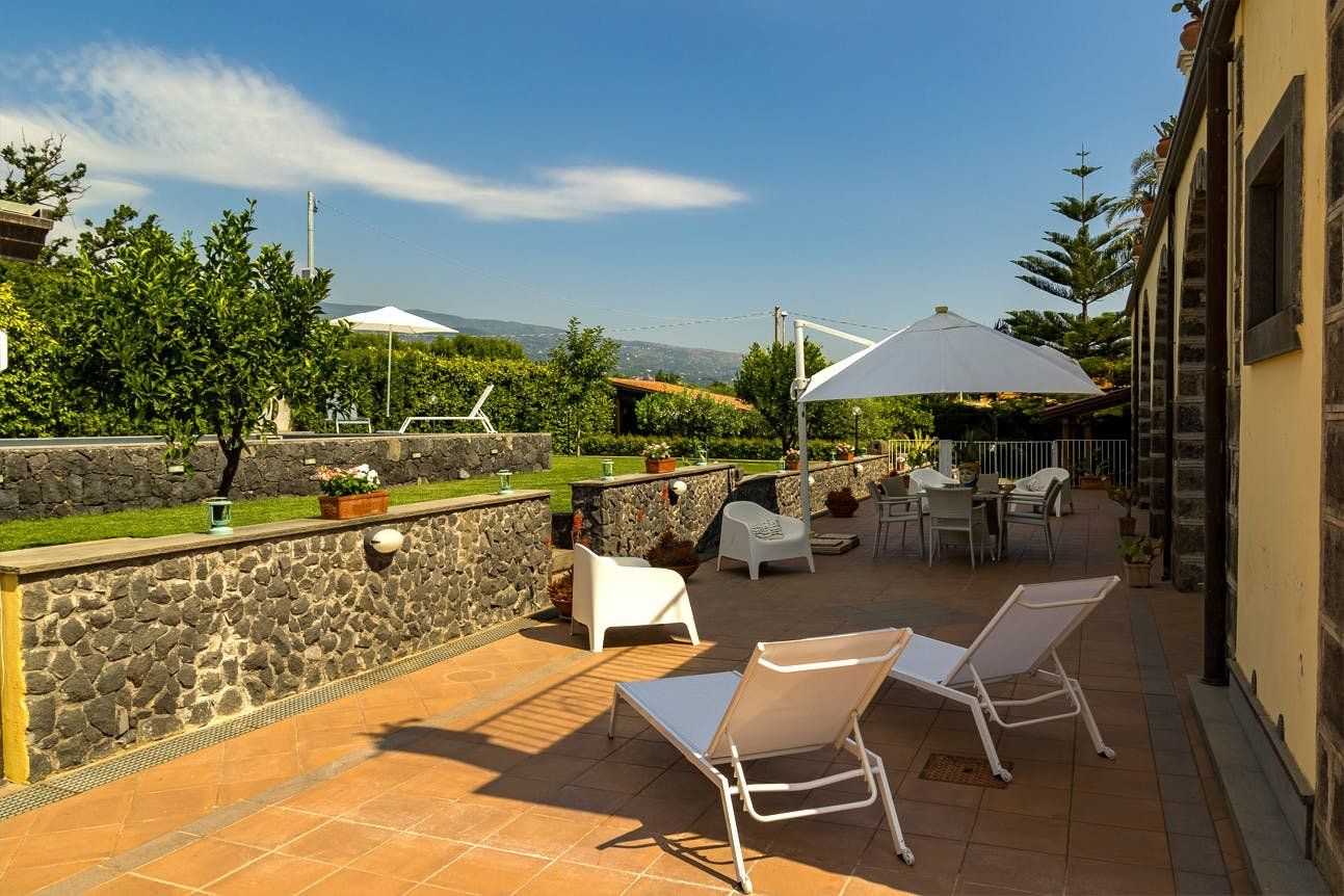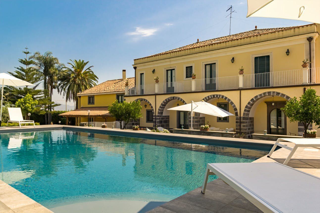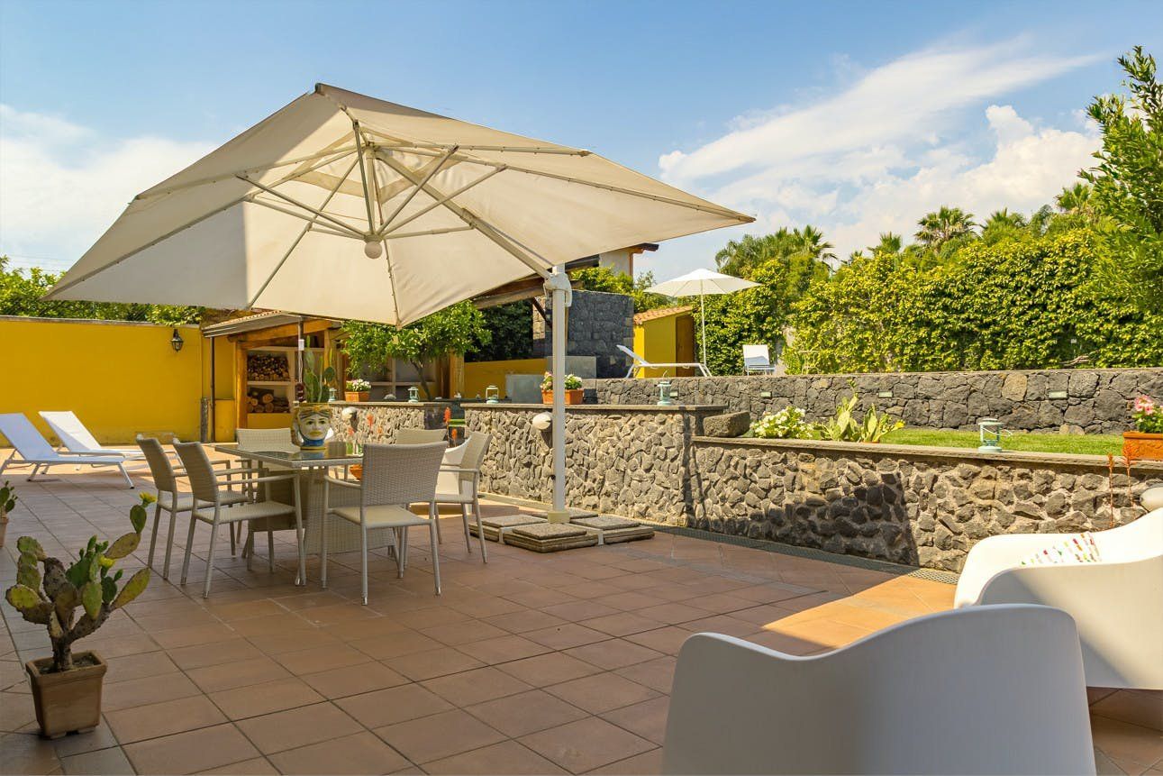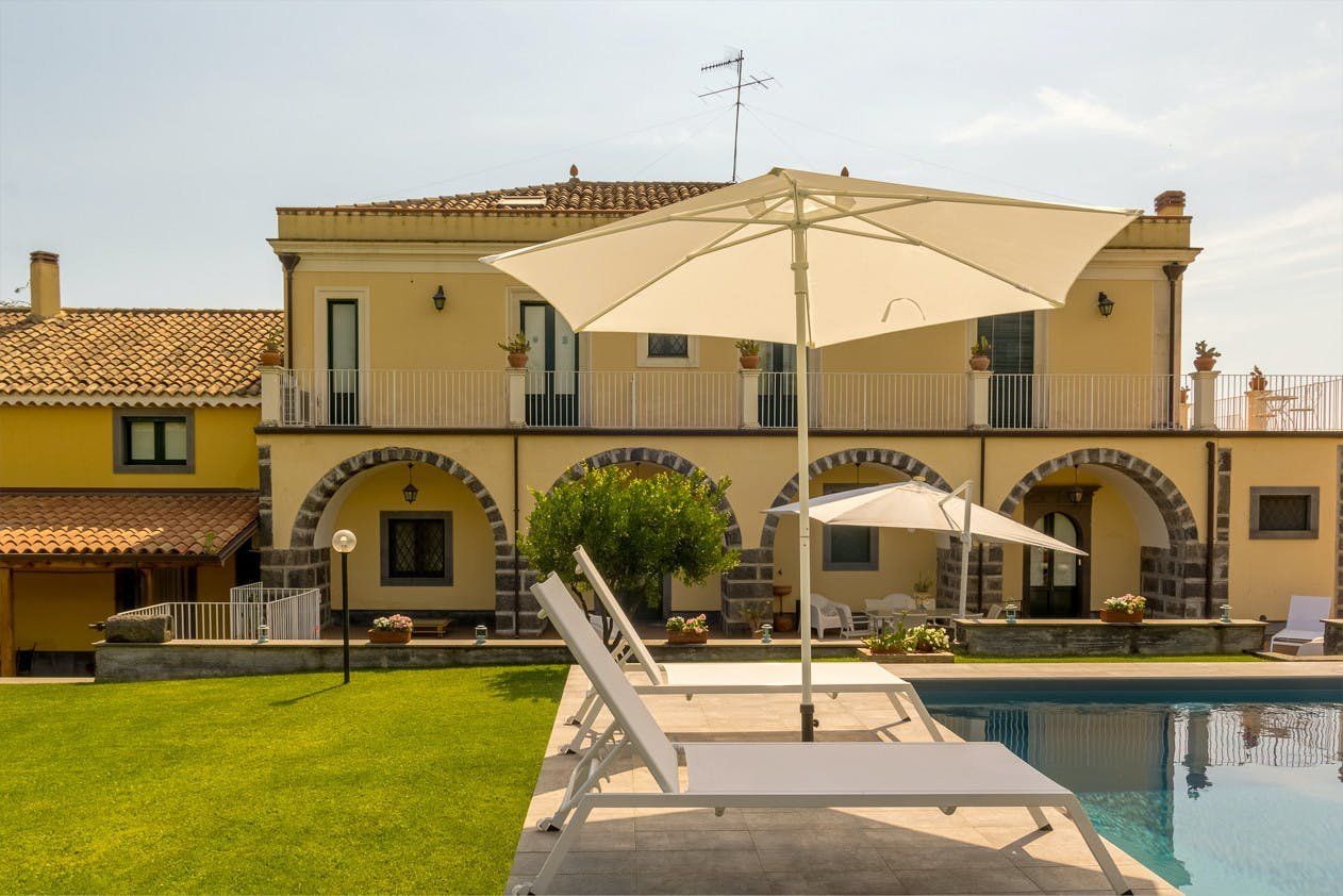 Situated on the slopes of Mount Etna and with stunning views of the volcano and sea, this home is all about the location for us. The traditional interior gives a nod to its 19th-century roots and because of its design, the lower level lacks a bit of natural light. In contrast, sunlight streams into the upstairs space. The generous garden and pool area is sure to be a hit with younger ones, with space to run around while the grown-ups top up their tan. Locally, Mount Etna is just thirty minutes away, so pop it near the top of your must-visit list.